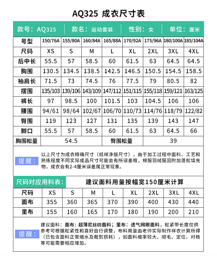 裁缝学苑AQ325运动套装纸样女装夏季防晒衣外套长裤两件套装样板