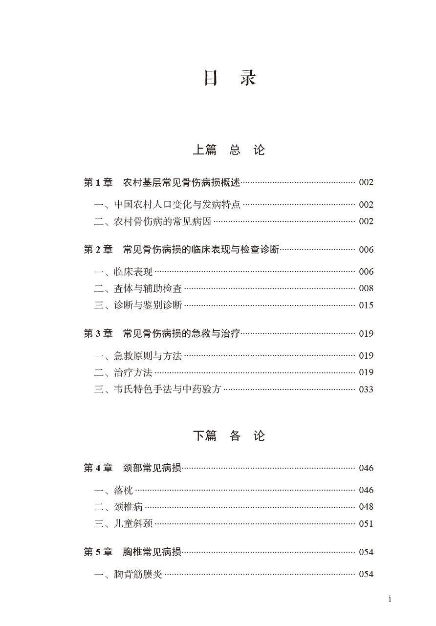 本书在国医大师韦贵康教授的倡议与指导下完成,对基层常见骨伤病损防治具有一定的临床参考价值和现实意义。全书分上、下两篇。上篇主要介绍了农村基层常见骨伤病损概述及其临床表现、检查诊断、急救与治疗;下篇则主要介绍了颈部、胸椎、腰骶椎、四肢等常见病损的发病规律和防治方法,涉及各类骨伤病损及相关病种近 50 个。书中还配有相关手法操作演示图,力求深入浅出,易学易用。本书语言精练,图文并茂,可供农村基层卫生院、诊所等相关科室的临床医生学习参考。
