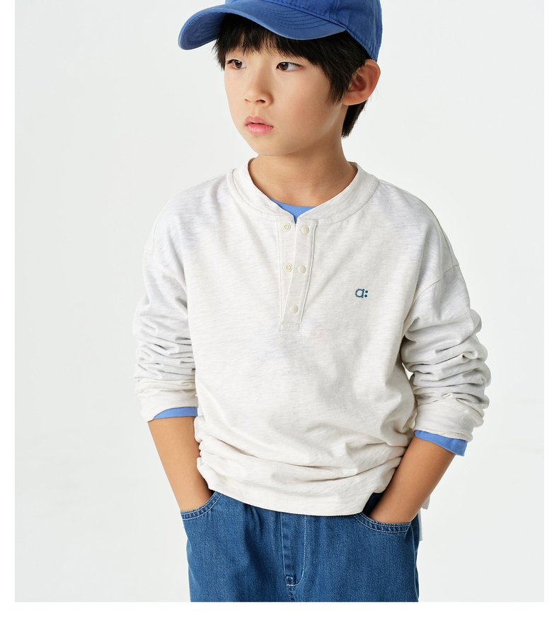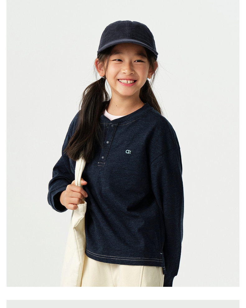 【春Vol.1】allblu幼岚【丑竹亨利领长袖T恤】儿童长袖T恤26春新款男童女童ZY