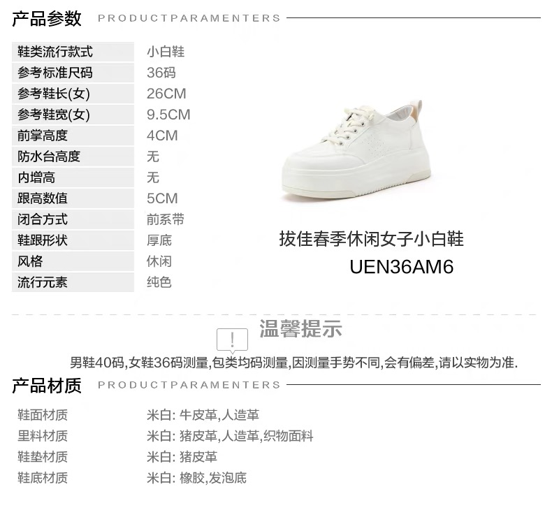 【云粉节】BF楼Bata小白鞋女2026春款时尚百搭厚底增高休闲鞋UEN36AM6 吊牌价1059 活动价739