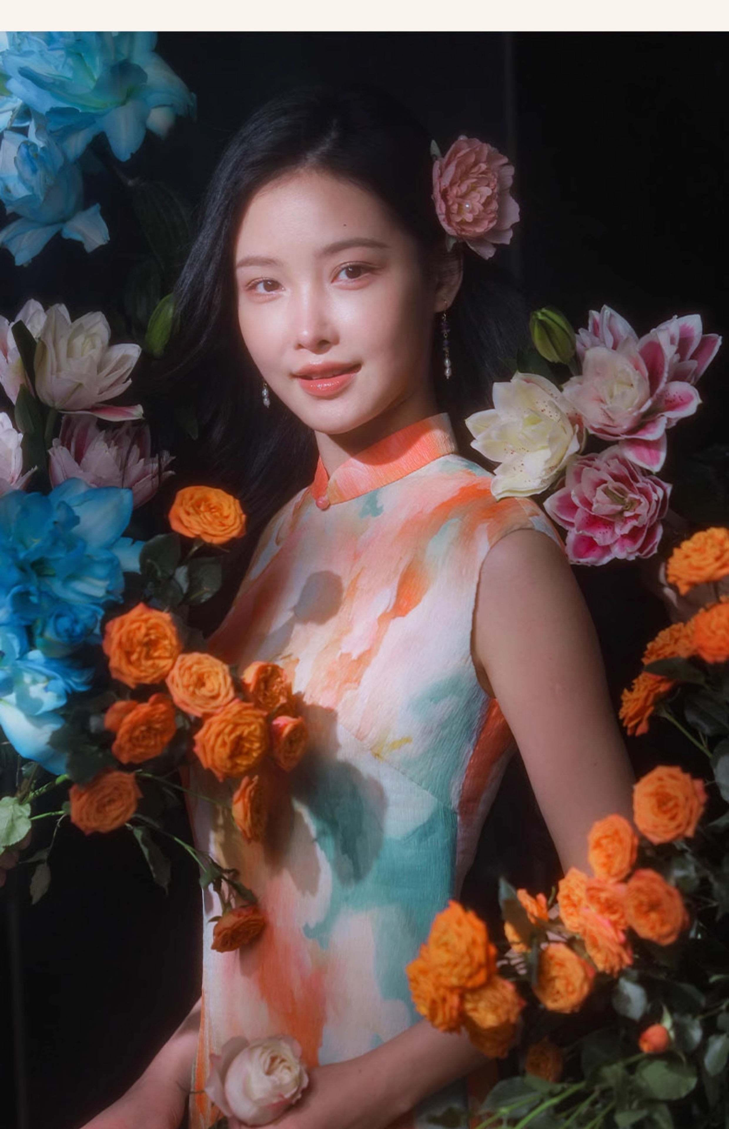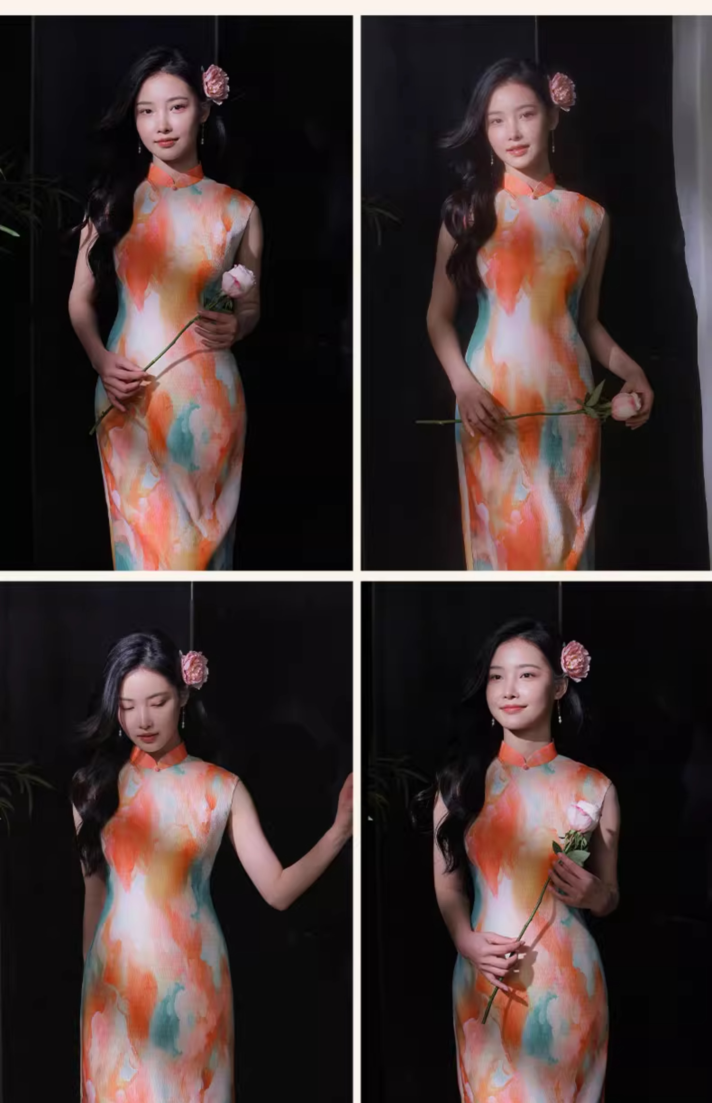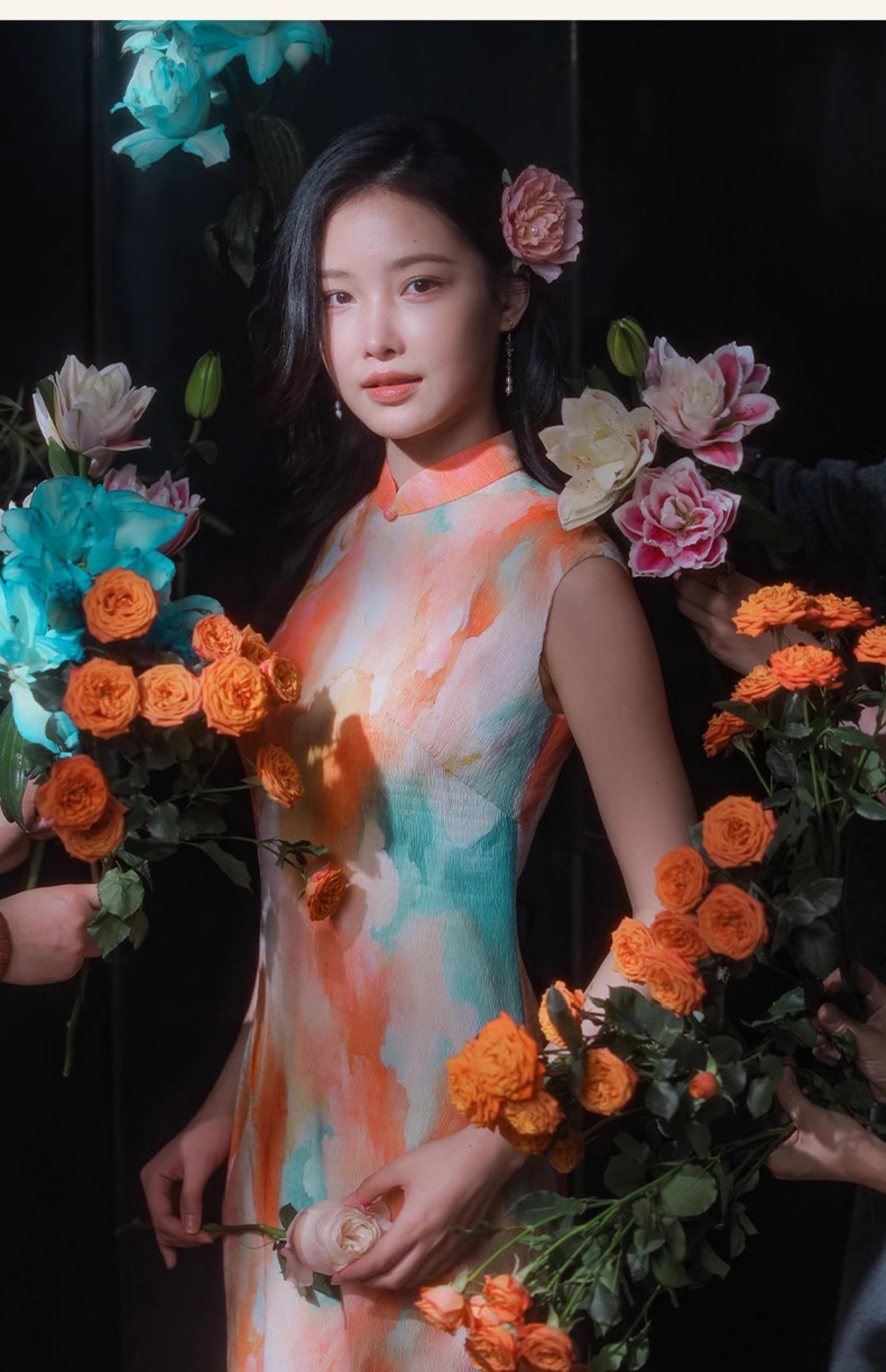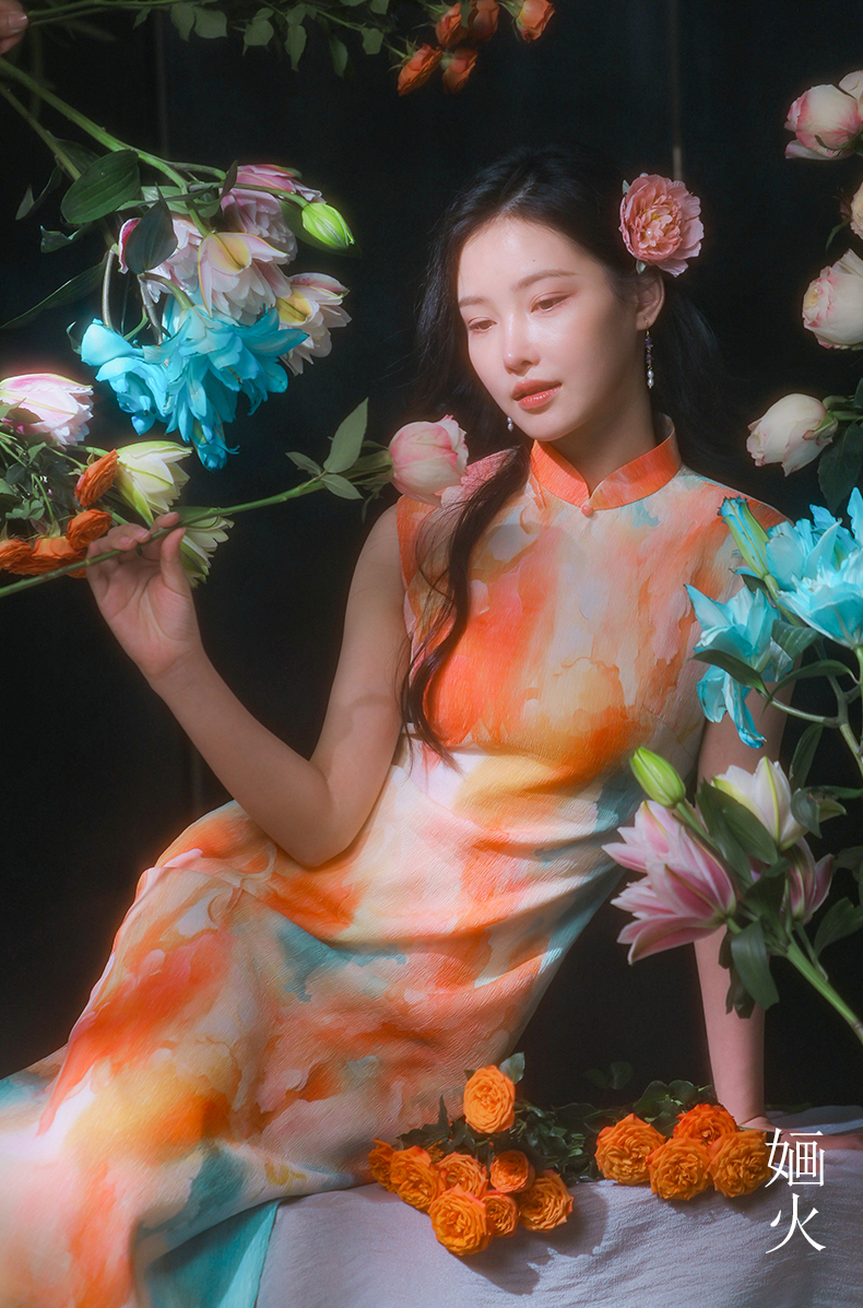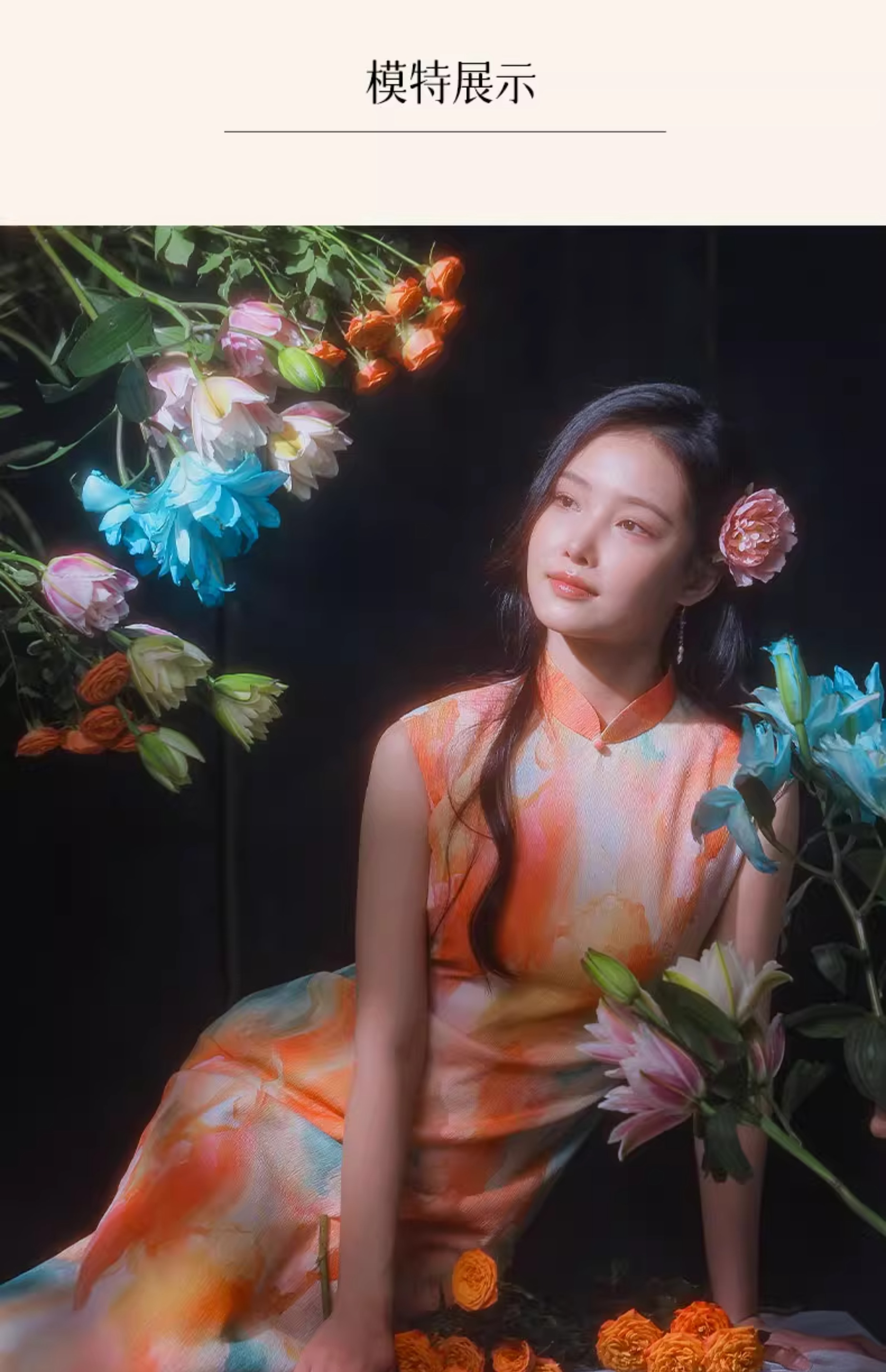 逸红颜婳火2025夏季新款植物染渐变艺术褶皱新中式低领改良旗袍女