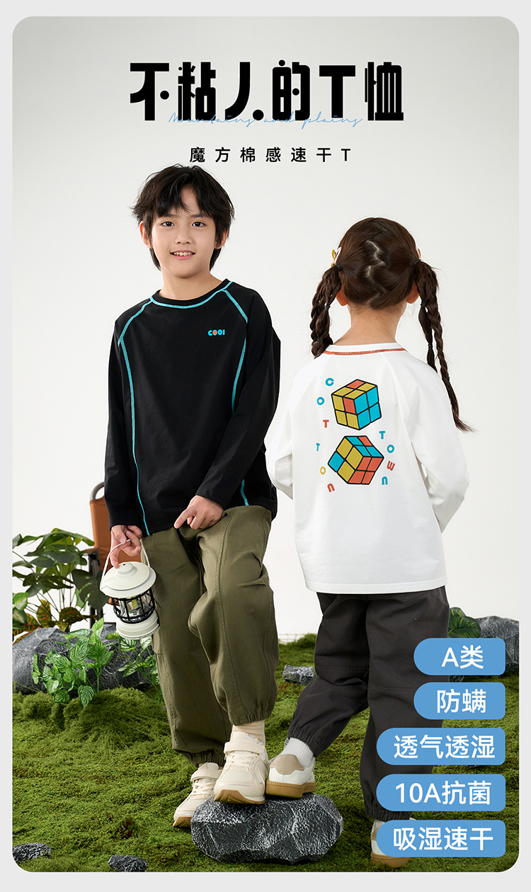 【49.9元/2件起】10A抗菌莱卡棉儿童秋季长袖T恤打底衫男童女童百搭T