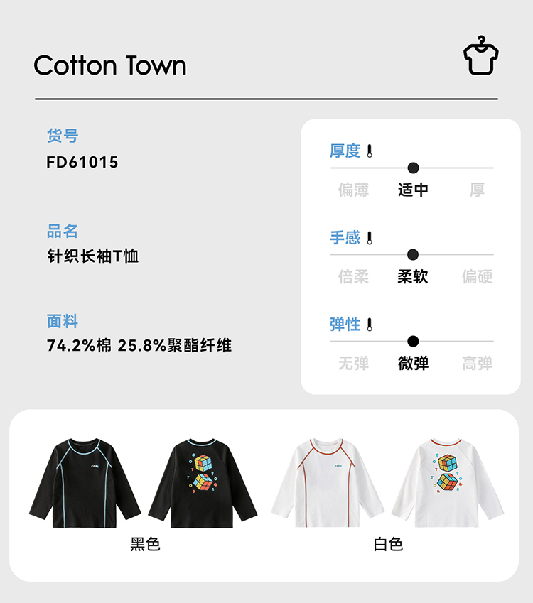【棉感T桖】棉花堂针织长袖T恤10A抗菌 舒适防螨 吸湿透气 不易变型 FD61015