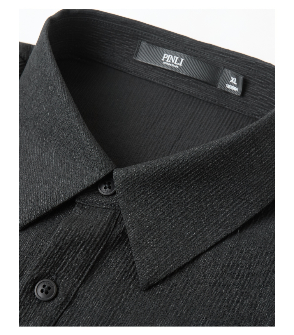 PINLI品立2025秋季新款男士宽松尖领纯色打底长袖衬衫休闲衬衣潮GD253113068