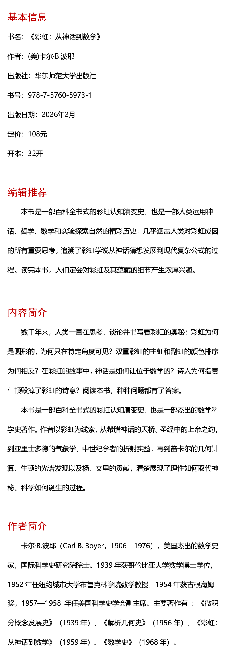 彩虹 从神话到数学 启蒙数学文化译丛 精装