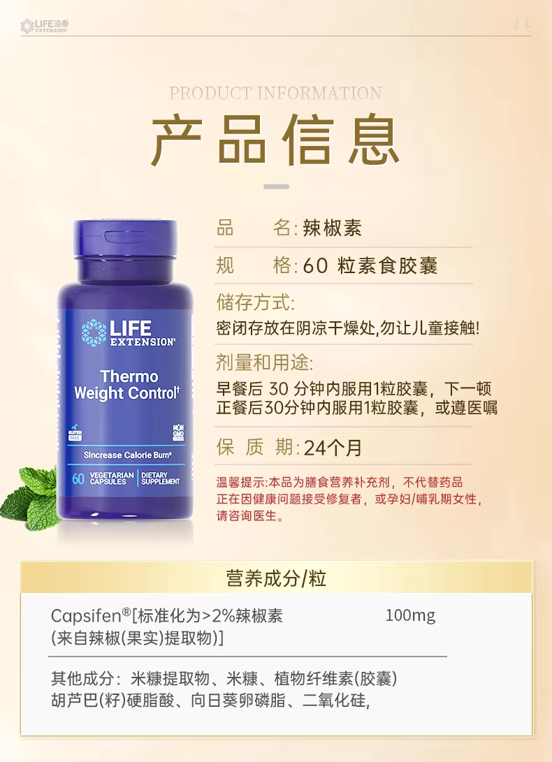 【EXP:2027年1月】沿寿Life Extension热重量控制胶囊60粒