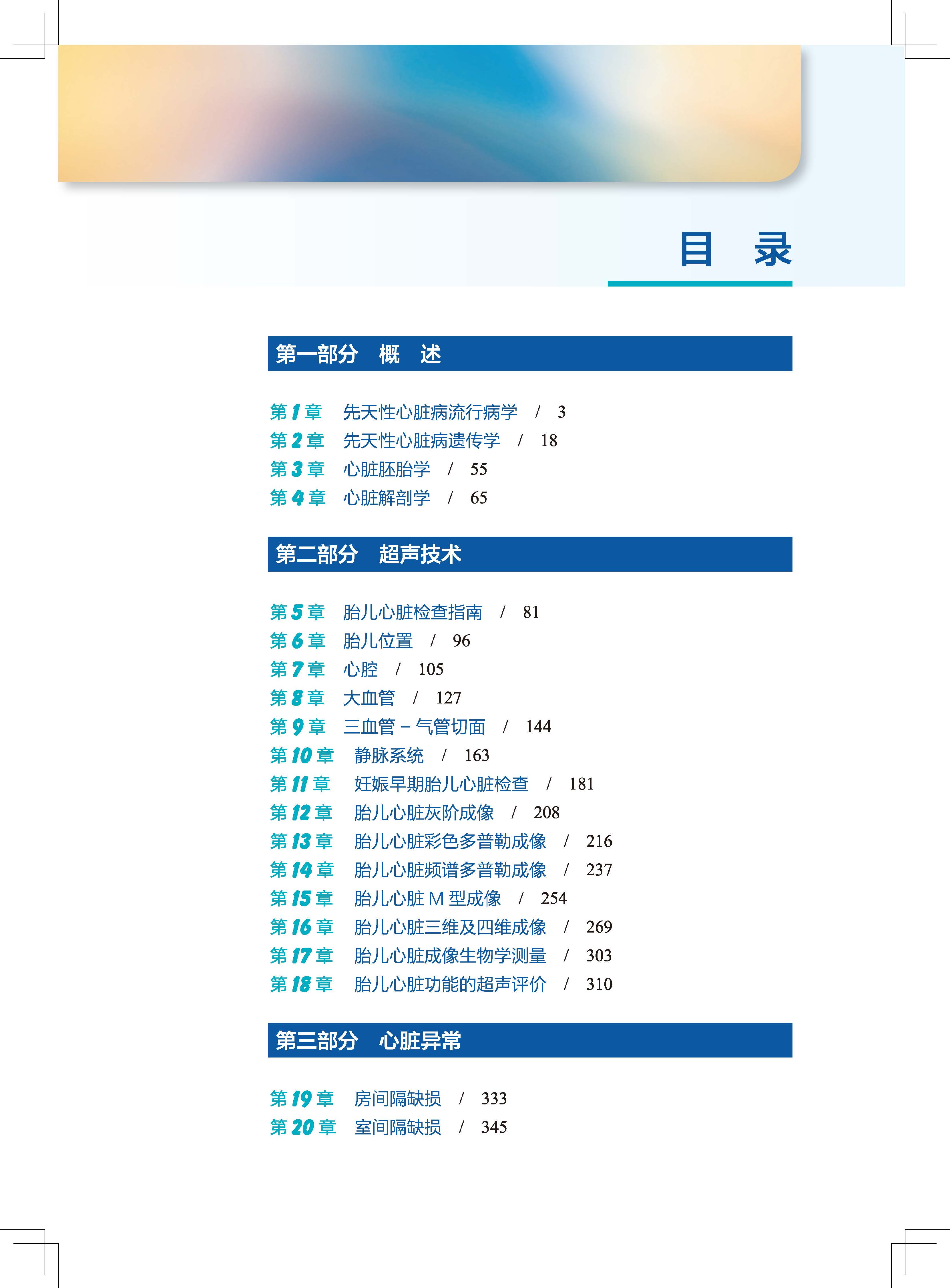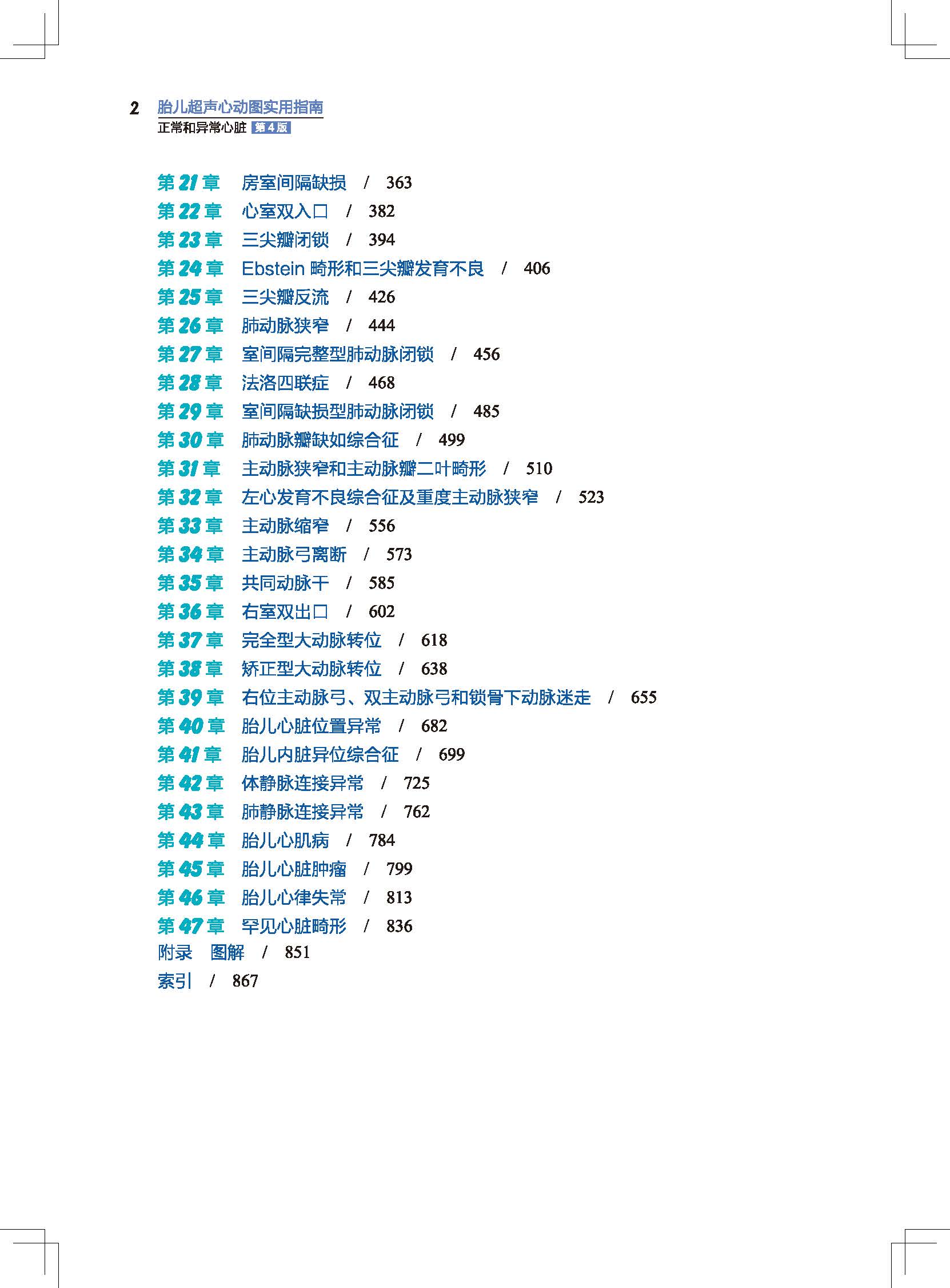 本书分为三个主要部分。 第一部分涵盖了胎儿心脏畸形的基本知识,共有4个章节, 分别介绍了先天性心脏病的流行病学、 遗传学以及心脏胚胎学和解剖学等方面。 第二部分由14个章节组成, 分别介绍了胎儿心脏超声筛查和胎儿超声心动图检查指南,胎儿心脏检查的优化, 胎儿心脏、 大血管和静脉系统的系统性评价以及胎儿心脏功能的评估。 第三 部分共有29章, 用统一格式对胎儿心脏畸形进行了详细讨论, 包括定义、 疾病谱、 发病率、 灰阶和彩色多普勒超声、 三维超声、 妊娠早期心脏异常的超声诊断和鉴别诊断、 预后与转归以及诊断方法。 心脏测量的参考值也在附录中用图和表的形式列出。