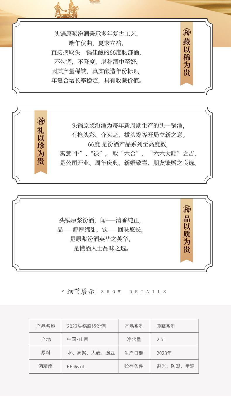 66°(小)2023头锅原浆 2.5L*1 山西杏花村汾酒