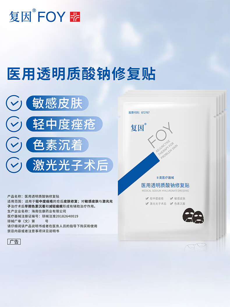 复因(FOY)医用透明质酸钠修复贴(黑膜) 【买3件到手4件优惠套装】