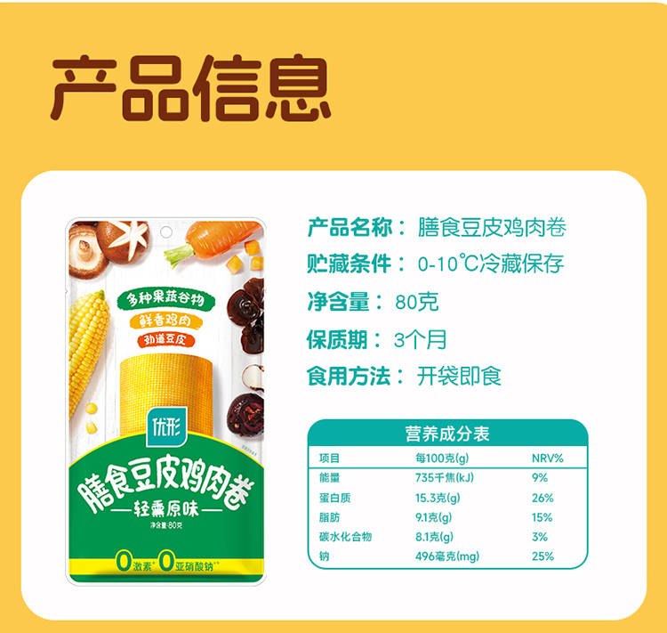【低温锁鲜】优形膳食豆皮鸡肉卷80g/袋