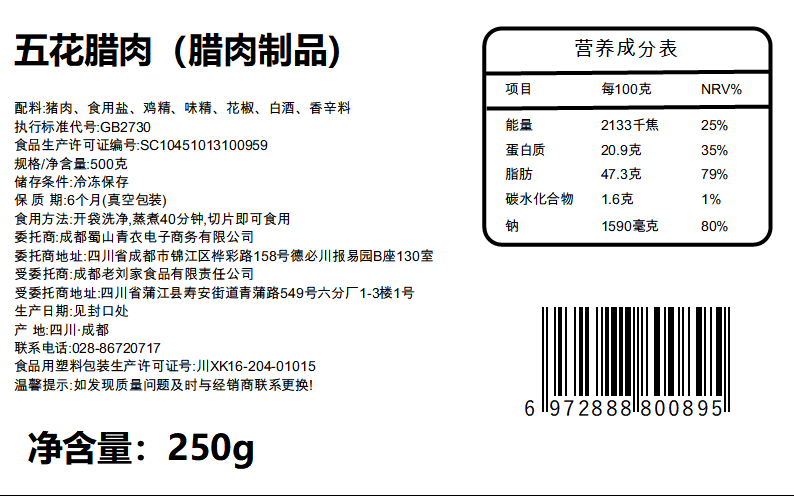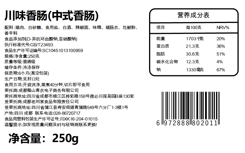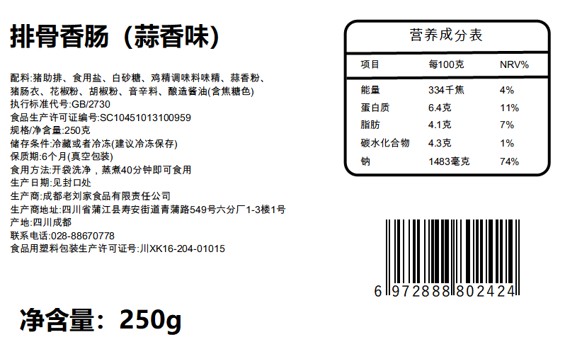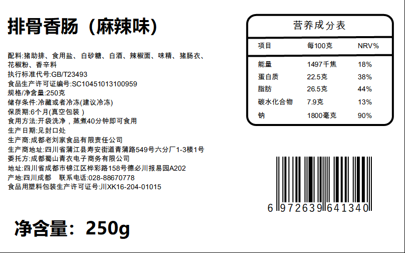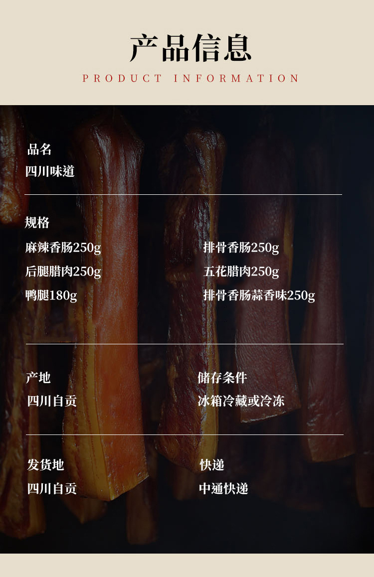 四川腊味¥128任选4件 | 250g装 6种腊味 川味麻辣香肠 地道烟熏麻辣香肠 排骨香肠 匠心而制(四川自贡72小时发货)