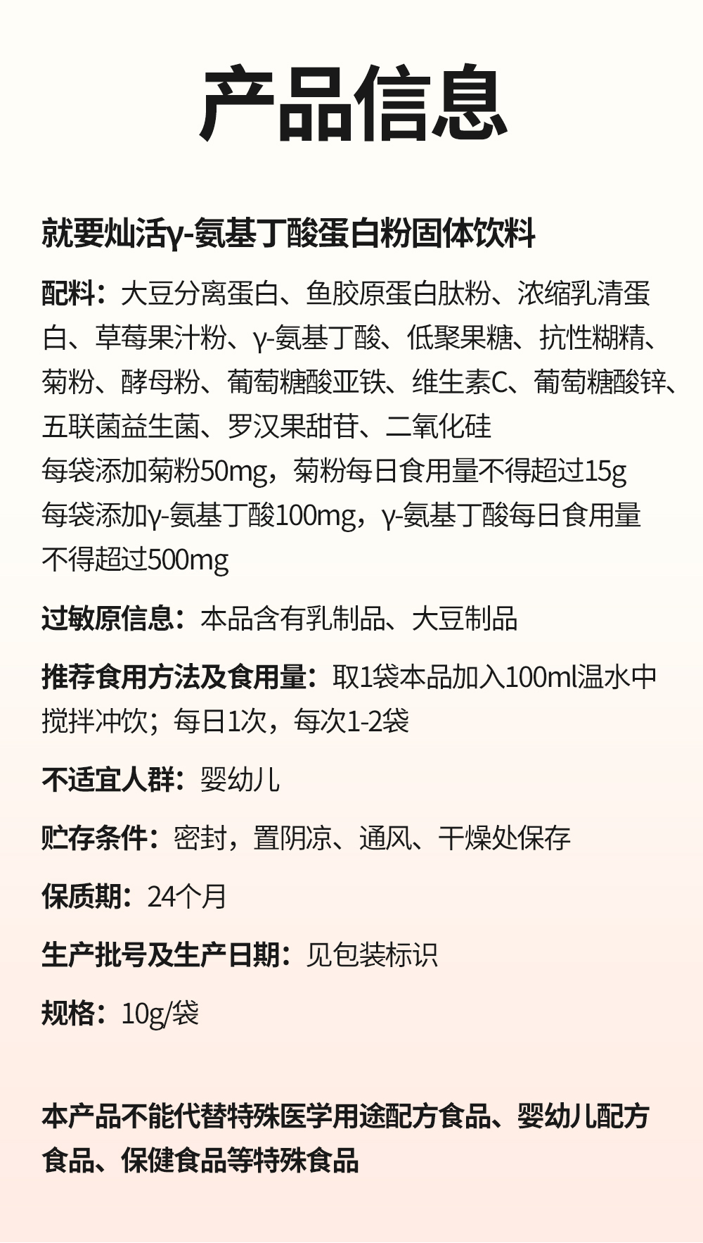 【预售】助你晚安灿活γ-氨基丁酸蛋白粉1-6盒套餐 400g/盒10g*40袋FX