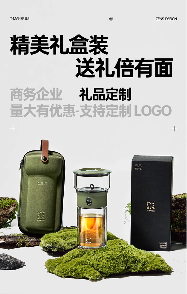 哲品派杯茶水分离男士泡茶杯玻璃杯耐高温家用商务便携茶具飘逸杯