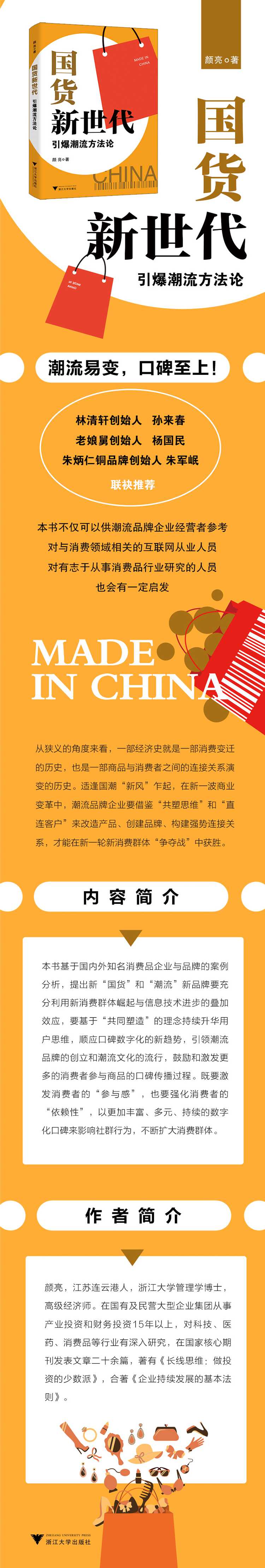 随着中国综合国力的增强,国货品质逐渐提升;同时,成长于中国经济高速发展的 Z 世代,消费力强、个性鲜明,拥有更强的爱国热情和民族自信心,对国潮品牌接受度越来越高。颜亮博士用自己对于行业的观察与思考,将打造国潮品牌乃至高端品牌的应尽之事、须避之阱娓娓道来,让人不禁深思品牌之道。