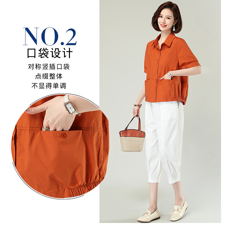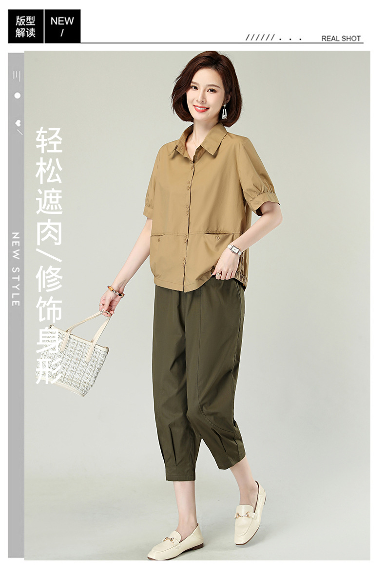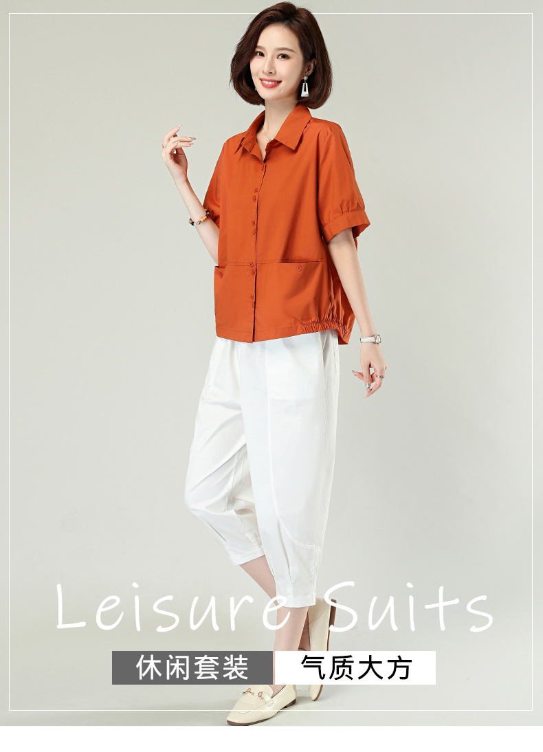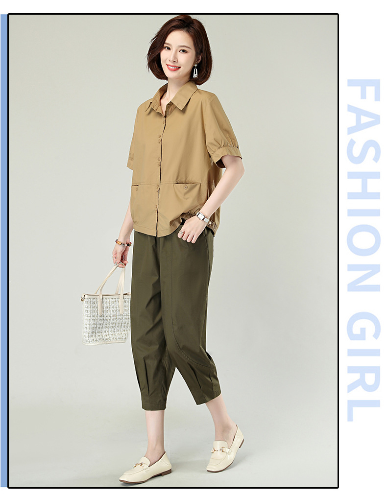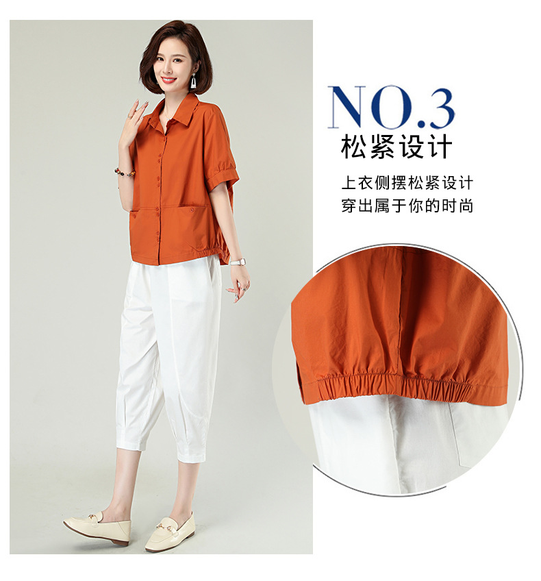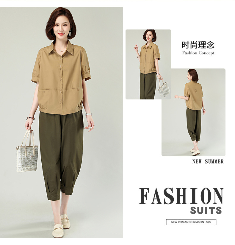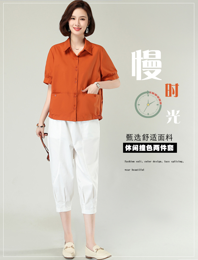 HR QIANBH656时尚休闲七分裤套装衬衫纯色显瘦遮肉