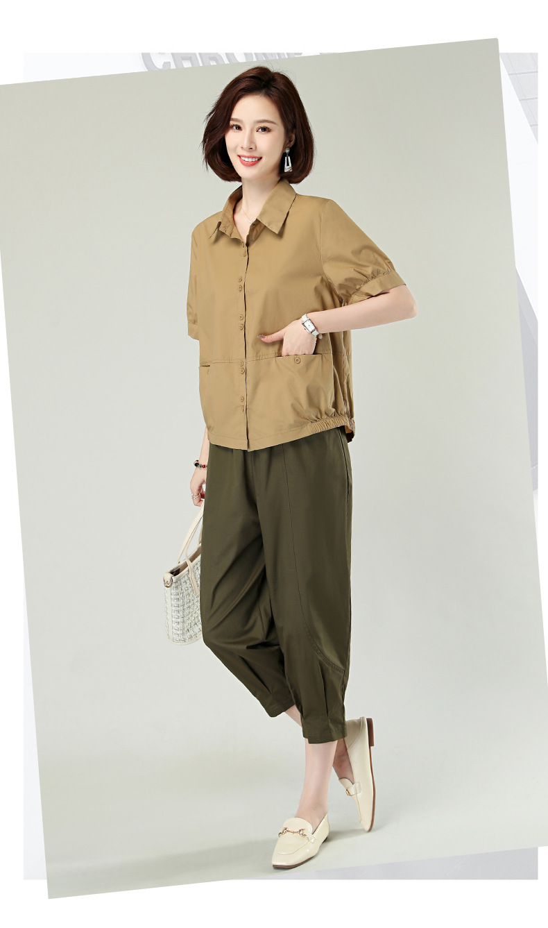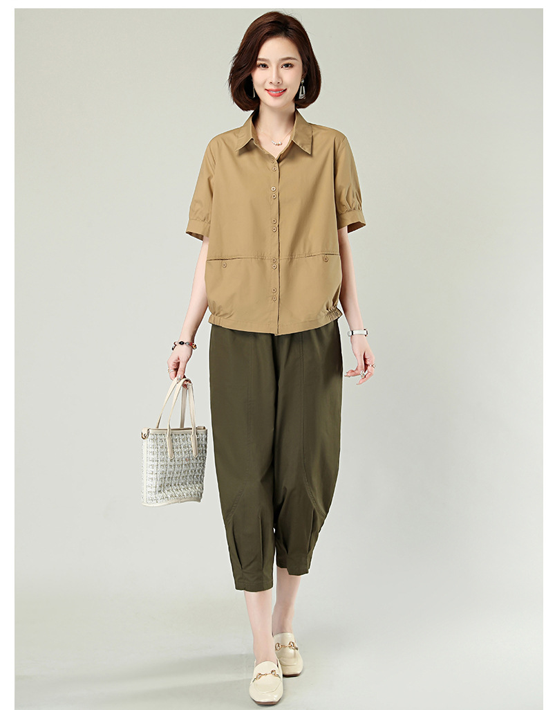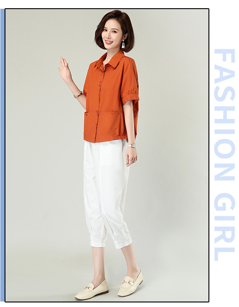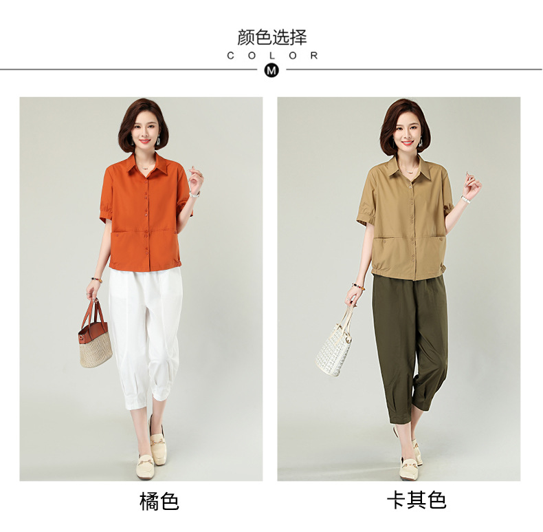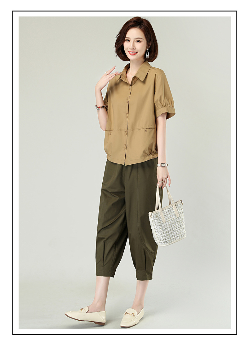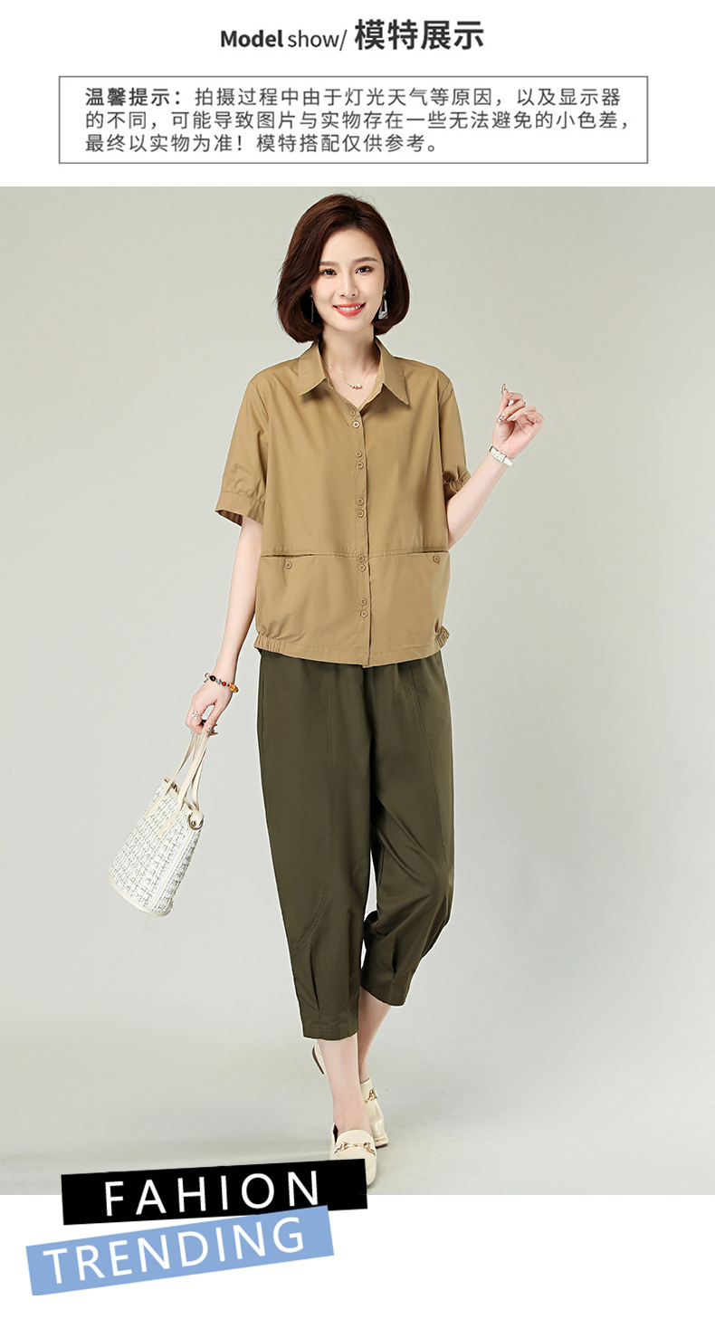 HR QIANBH656时尚休闲七分裤套装衬衫纯色显瘦遮肉