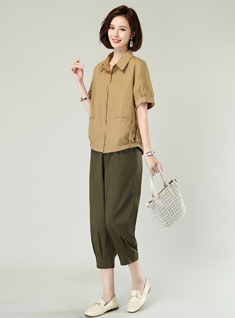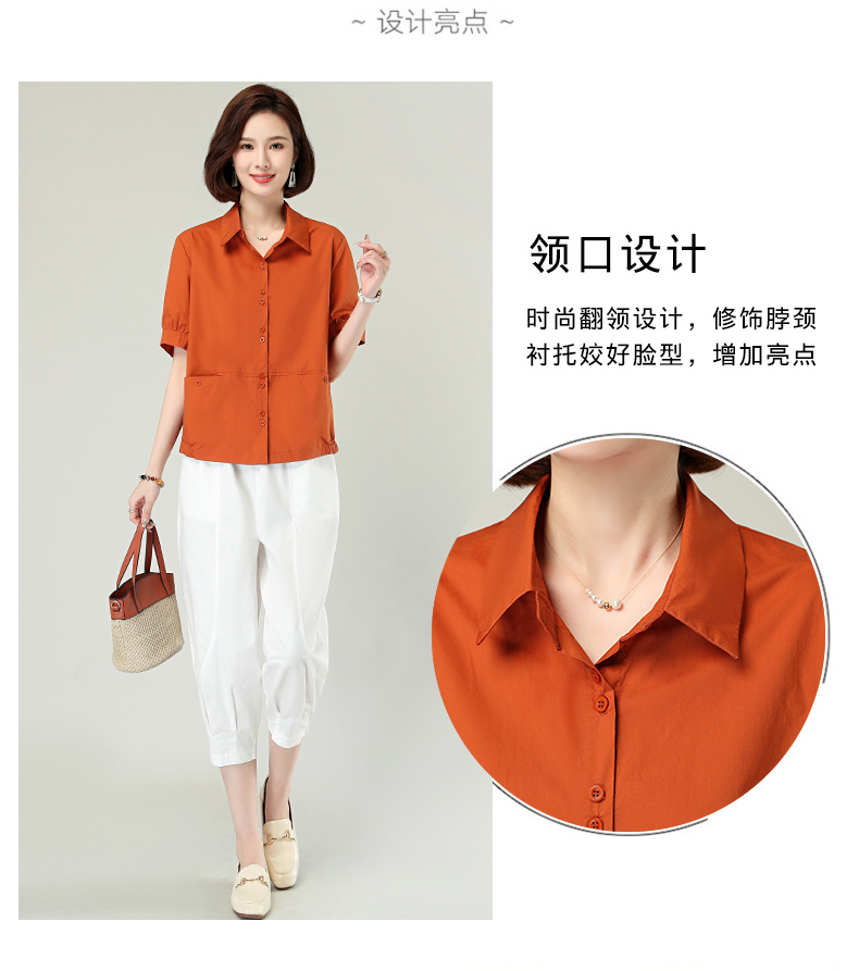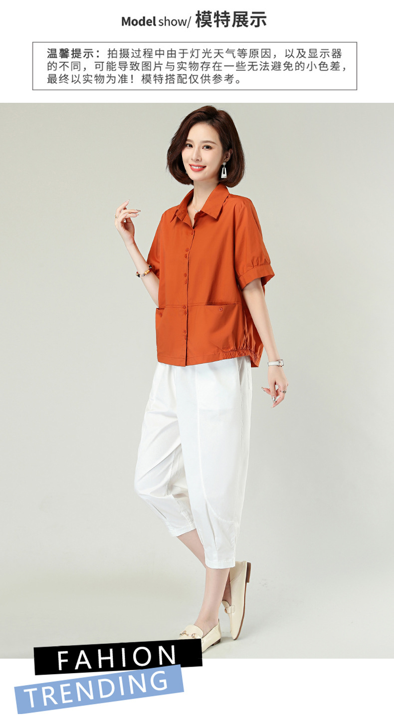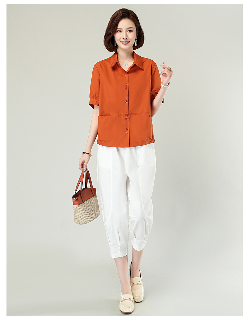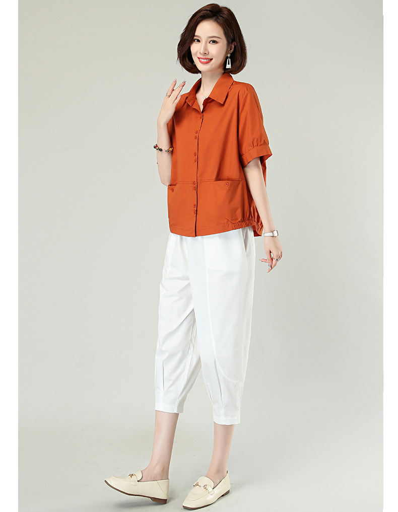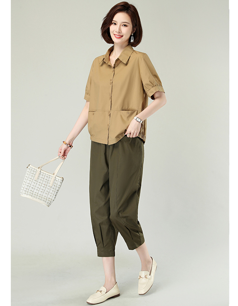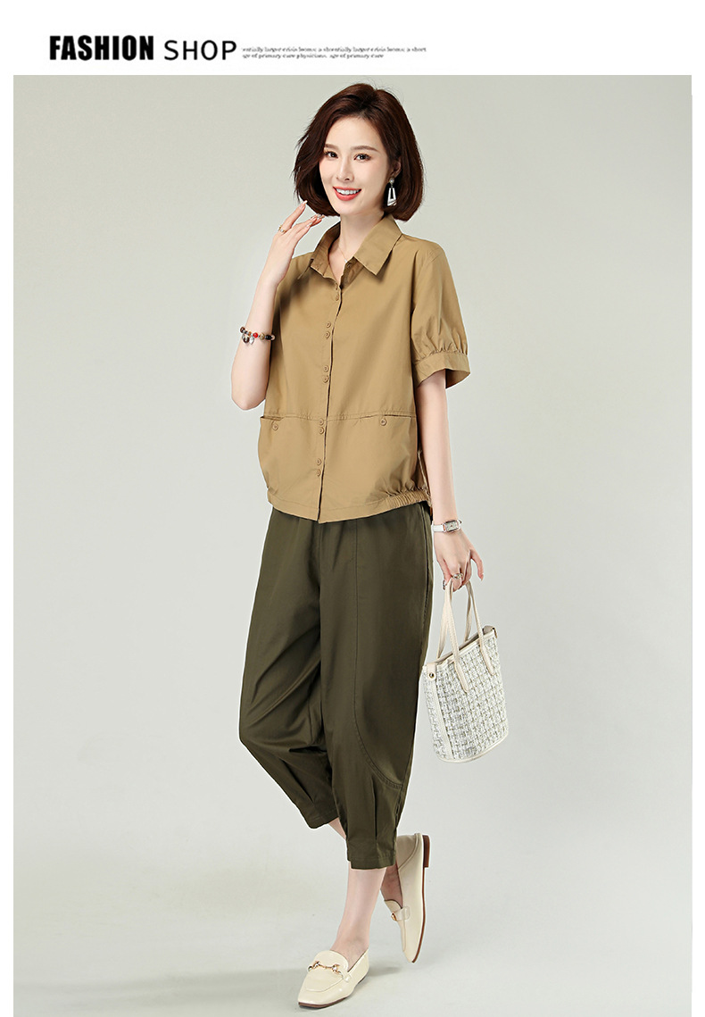 HR QIANBH656时尚休闲七分裤套装衬衫纯色显瘦遮肉
