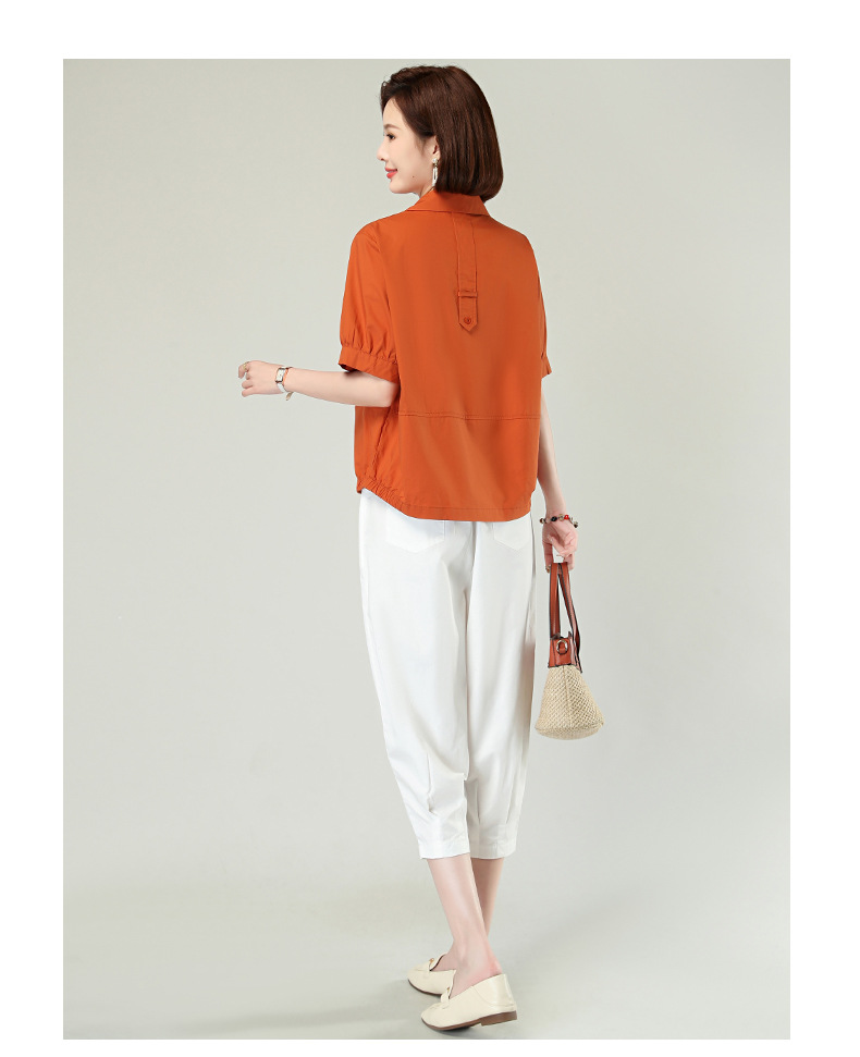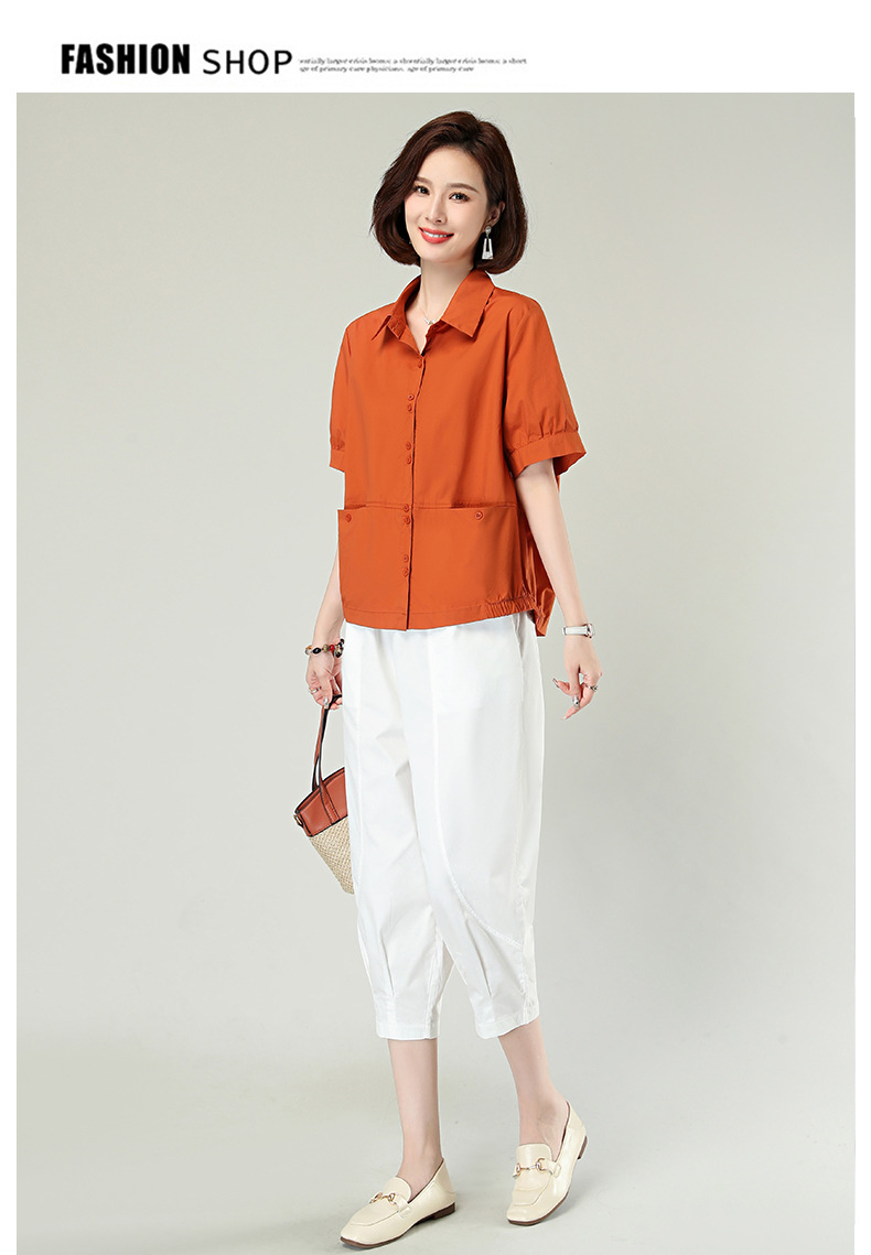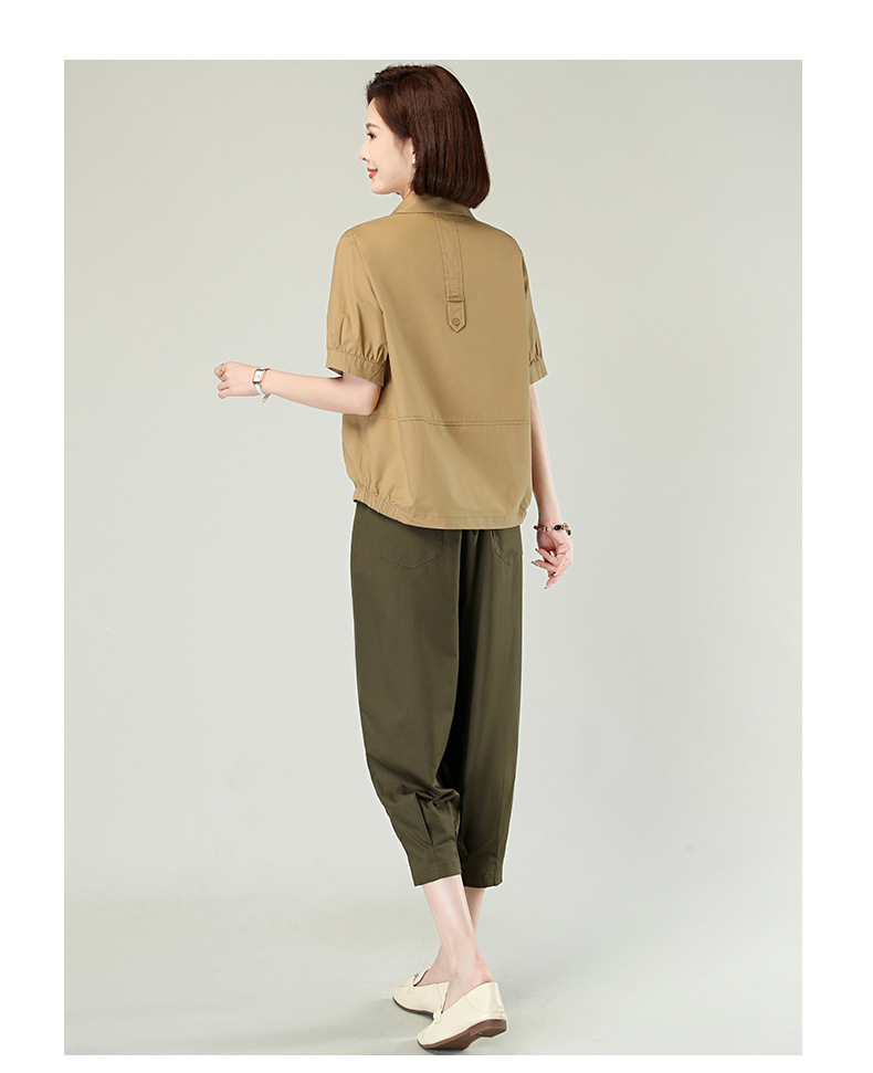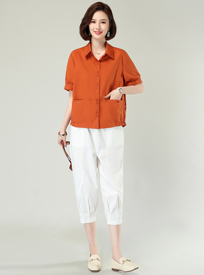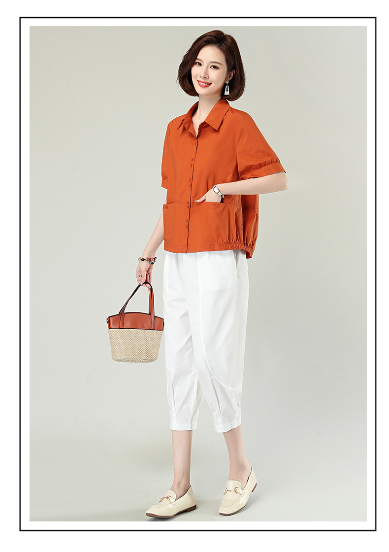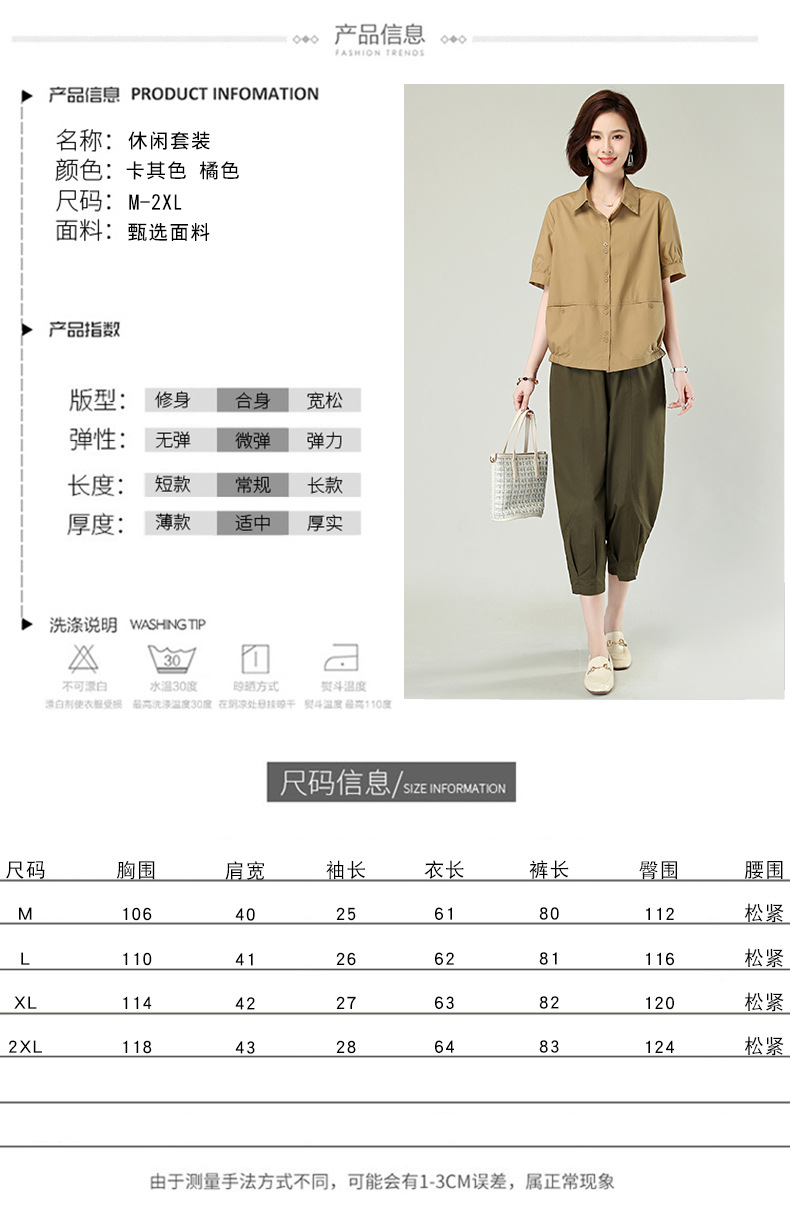 HR QIANBH656时尚休闲七分裤套装衬衫纯色显瘦遮肉