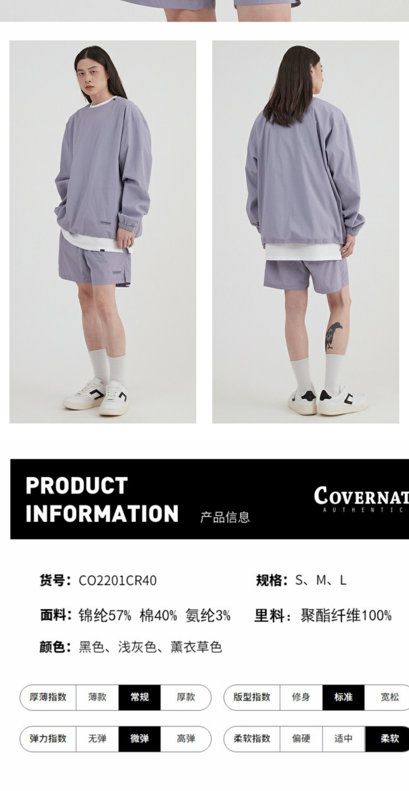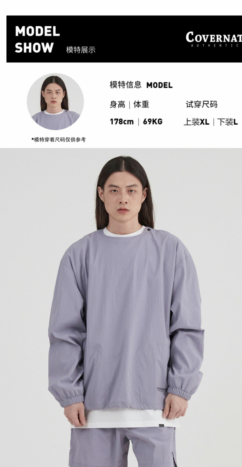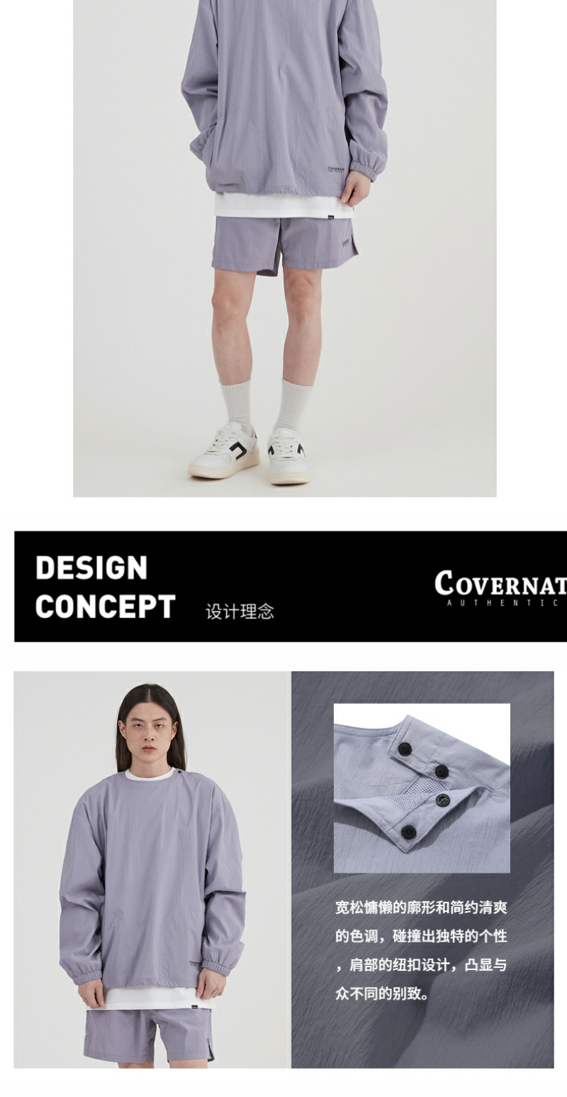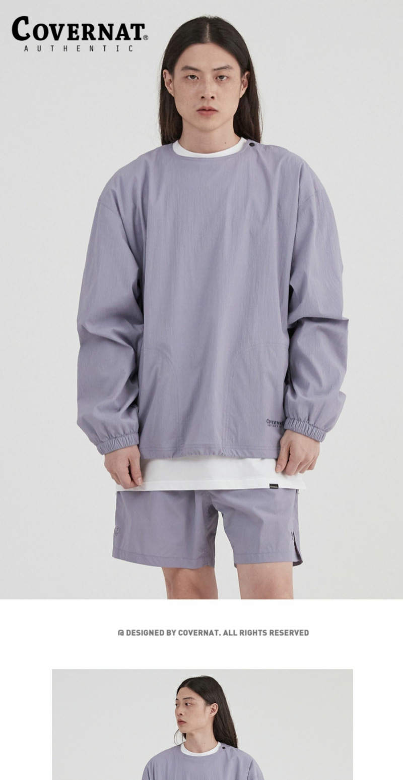 Covernat韩国潮牌圆领套头卫衣无性别春字母刺绣纯色宽松上衣CO2201CR40