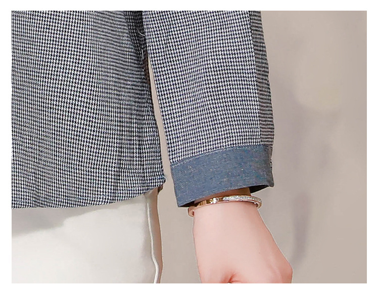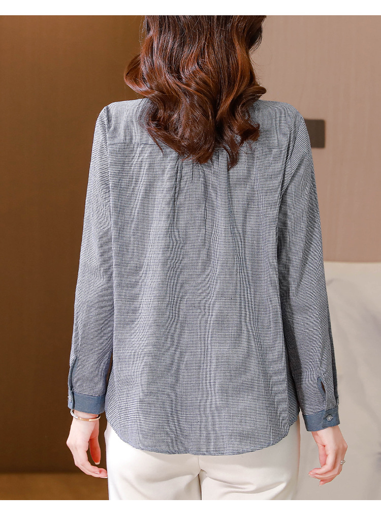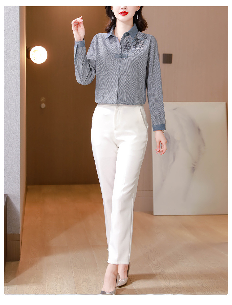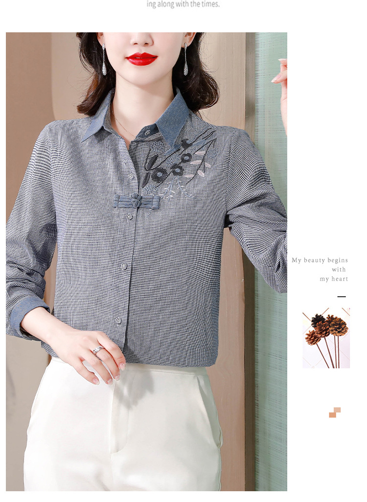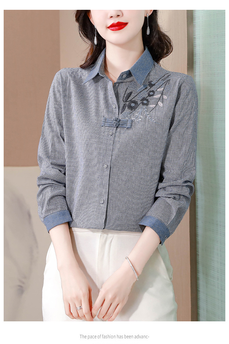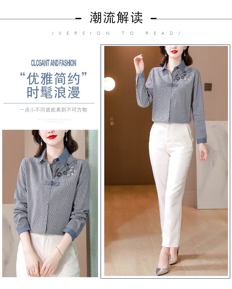 KQLA83N6618 2023年早秋文艺复古细格子衬衫女大码民族风刺绣国风盘扣上衣