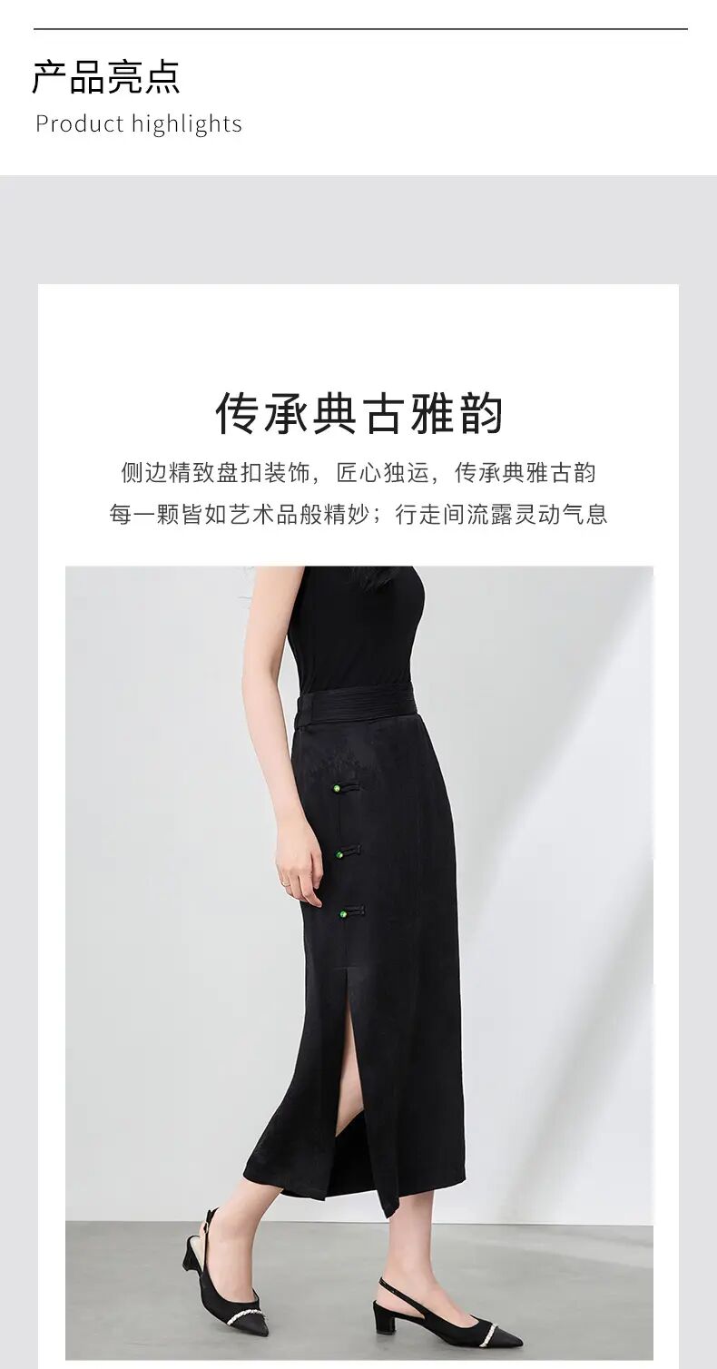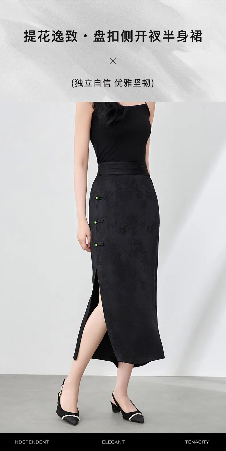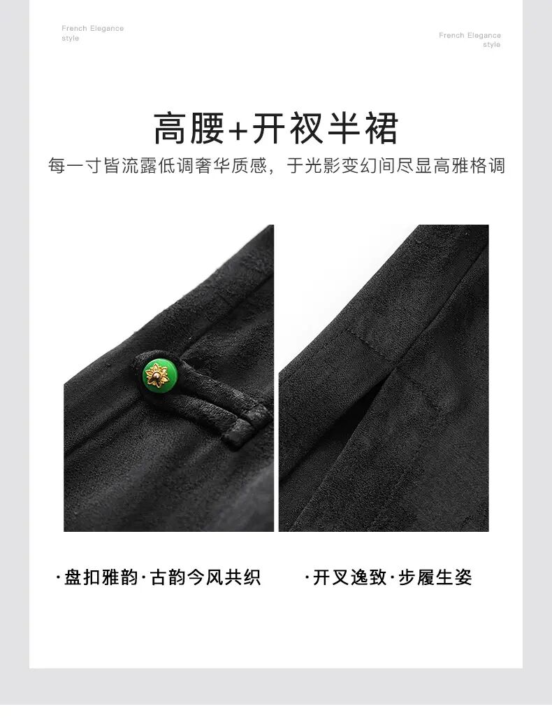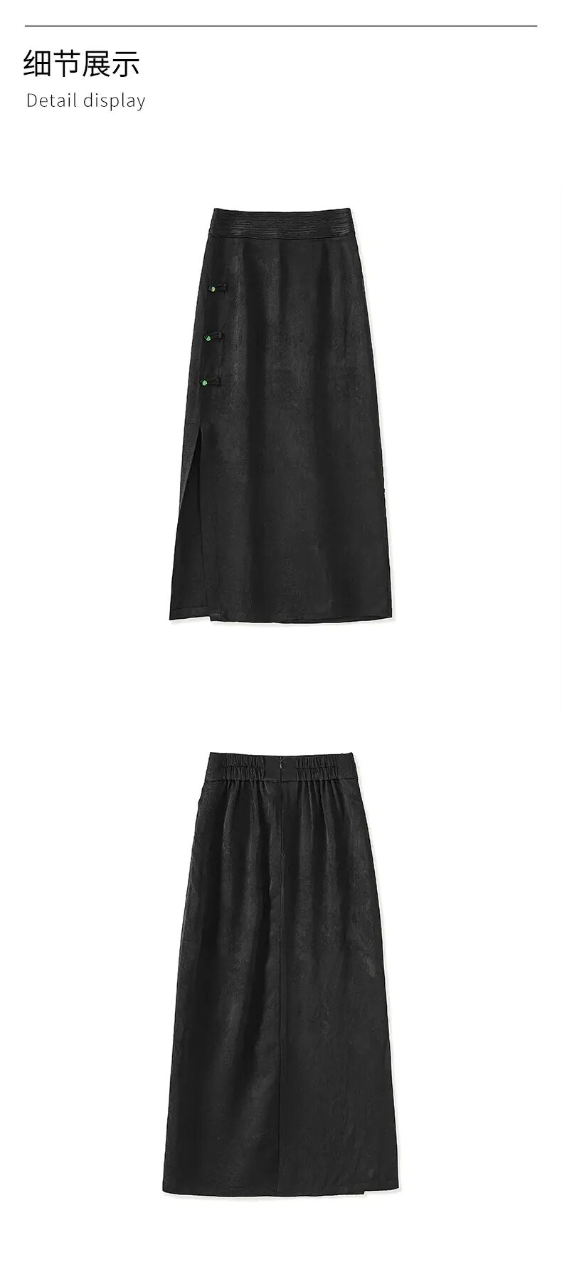 「高货wl」全新升级【铂金会员284/天猫379/差价95】(00227)洛诗琳人丝麻提花新中式半裙2025夏季优雅玉石扣国风半身裙00227
