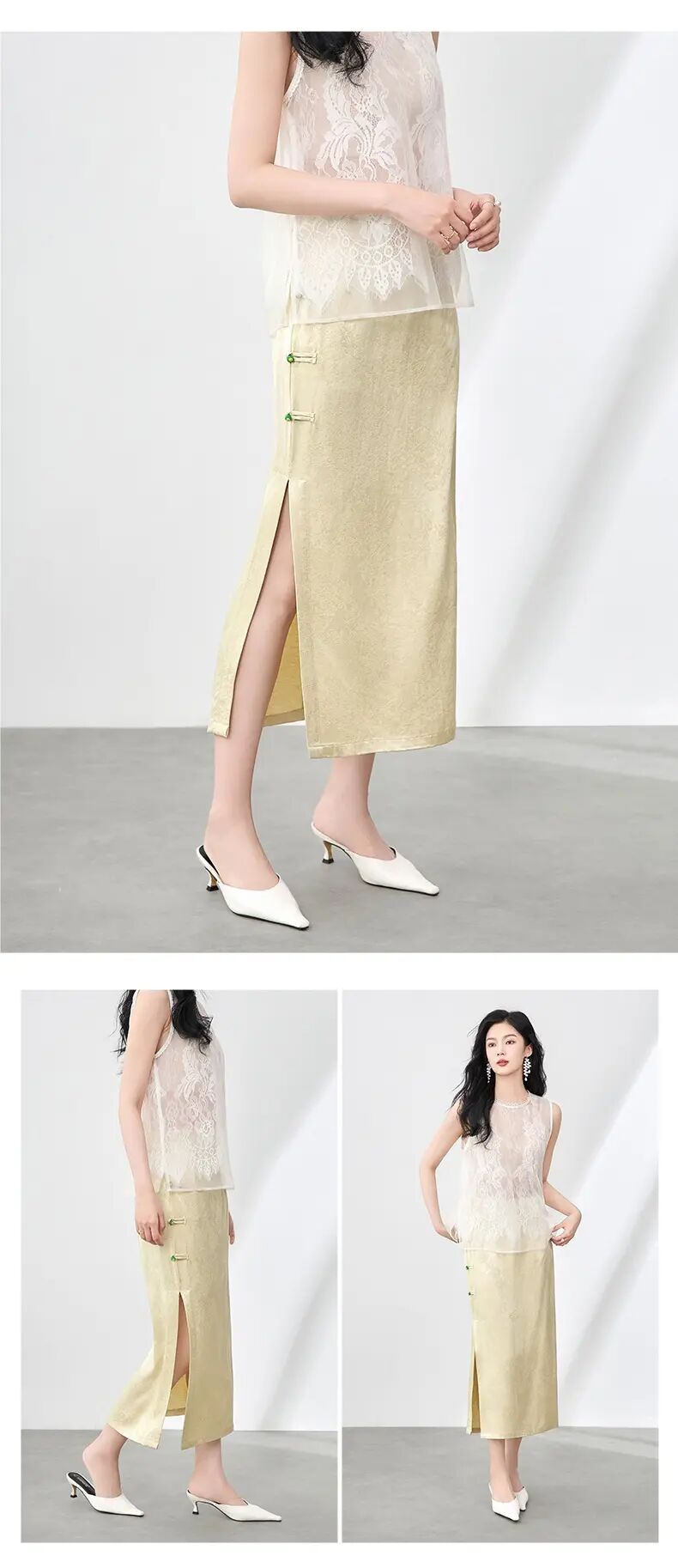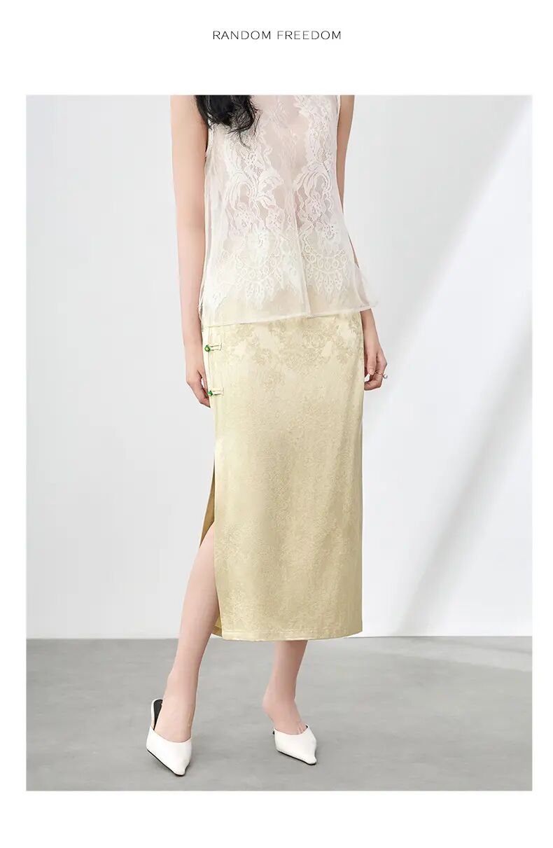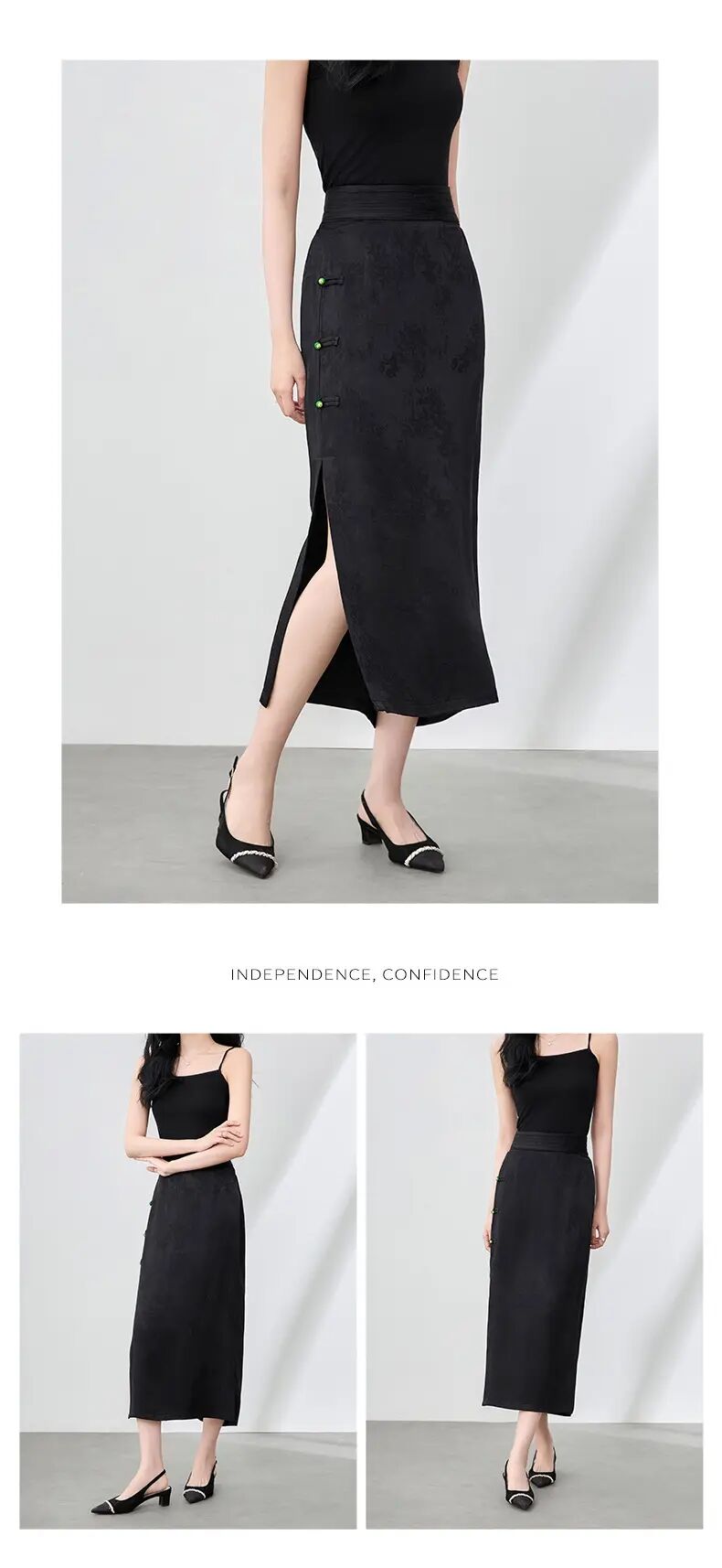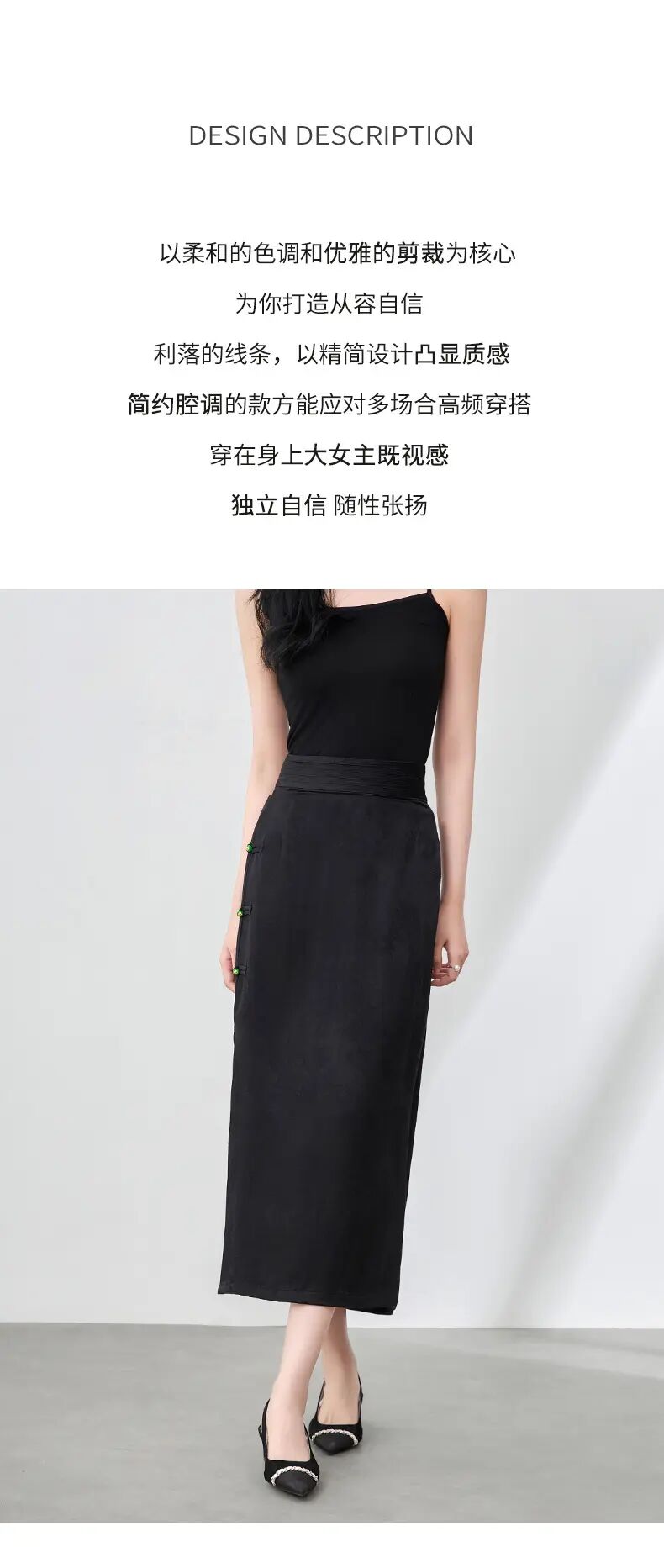 「高货wl」全新升级【铂金会员284/天猫379/差价95】(00227)洛诗琳人丝麻提花新中式半裙2025夏季优雅玉石扣国风半身裙00227