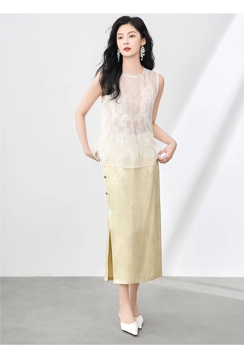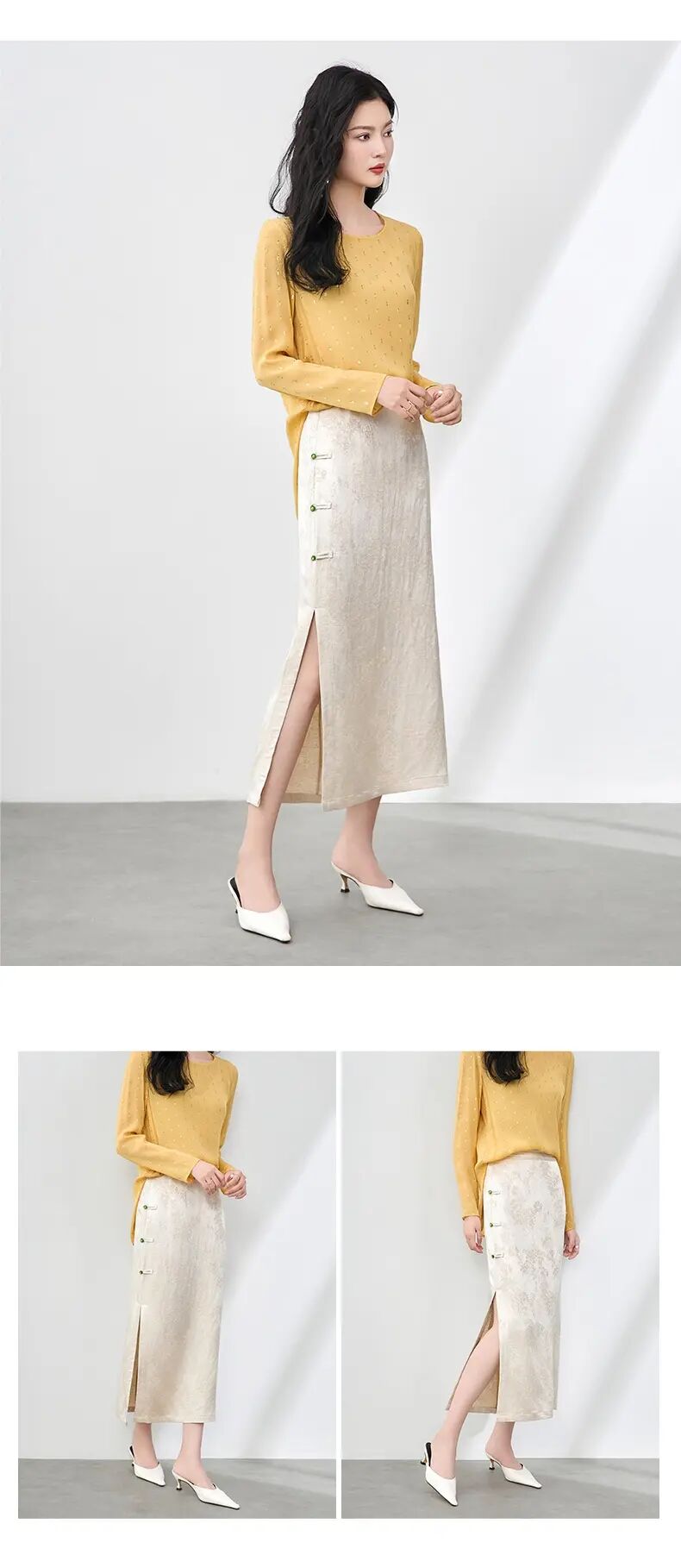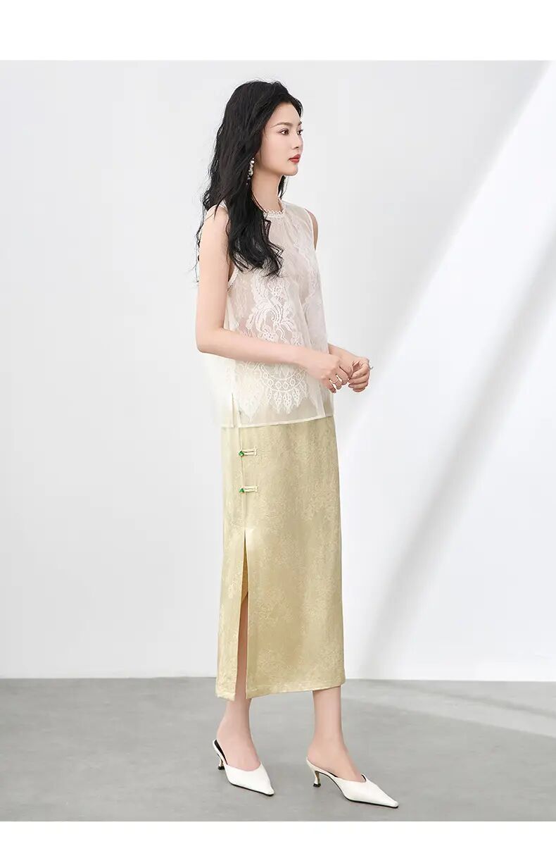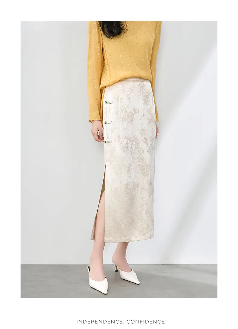 「高货wl」全新升级【铂金会员284/天猫379/差价95】(00227)洛诗琳人丝麻提花新中式半裙2025夏季优雅玉石扣国风半身裙00227