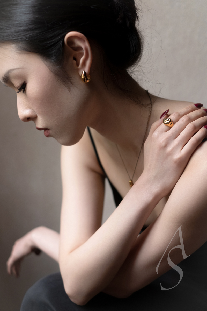 摒除一切繁复花哨的装饰,温柔圆润的轮廓曲线呈现出简约而优雅的美感。925纯银手工制作,金色采用了法国传统的Vermeil纯银镀18k金工艺,质感端重,精细抛光使其呈现莹亮的光泽。