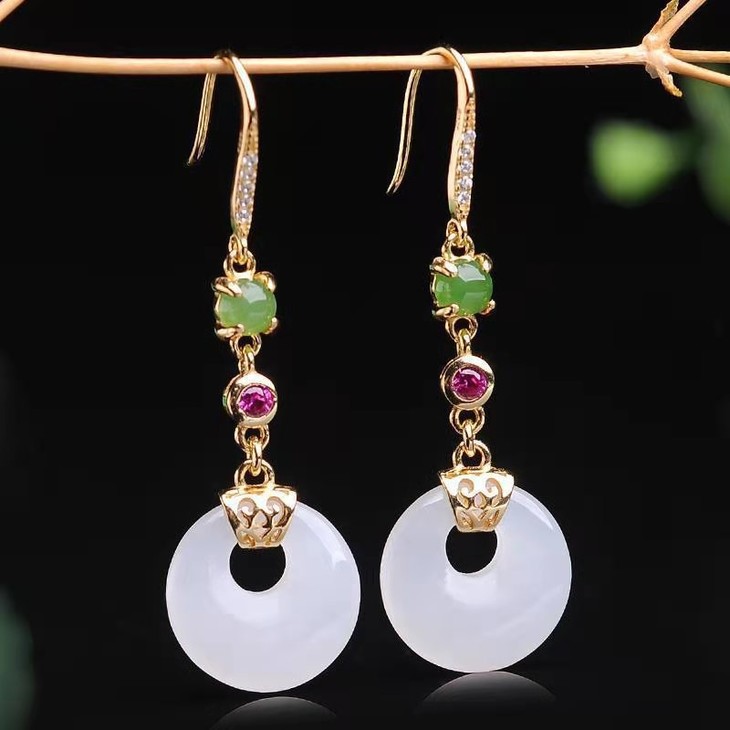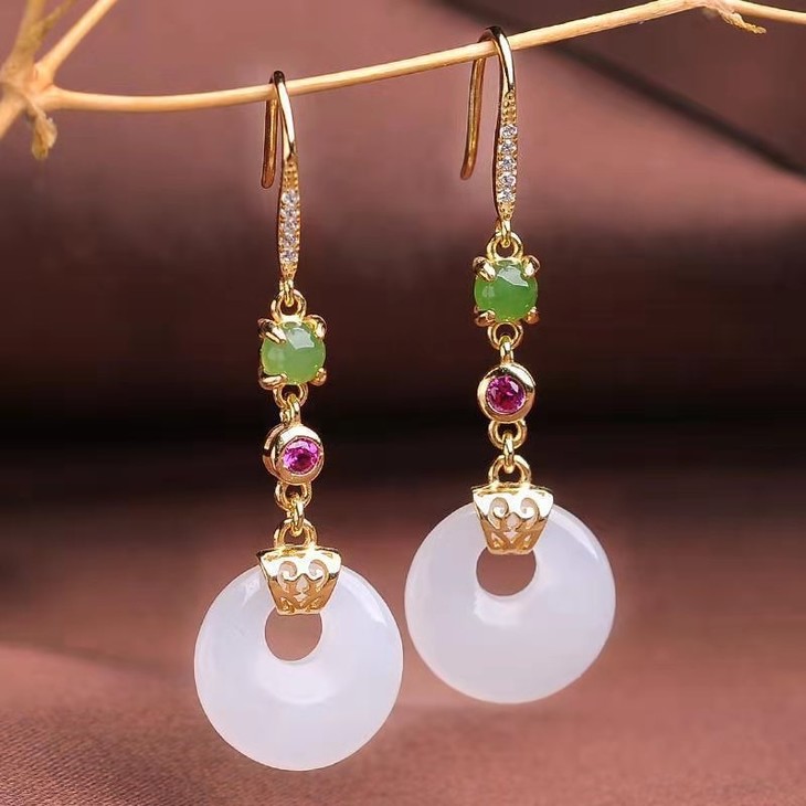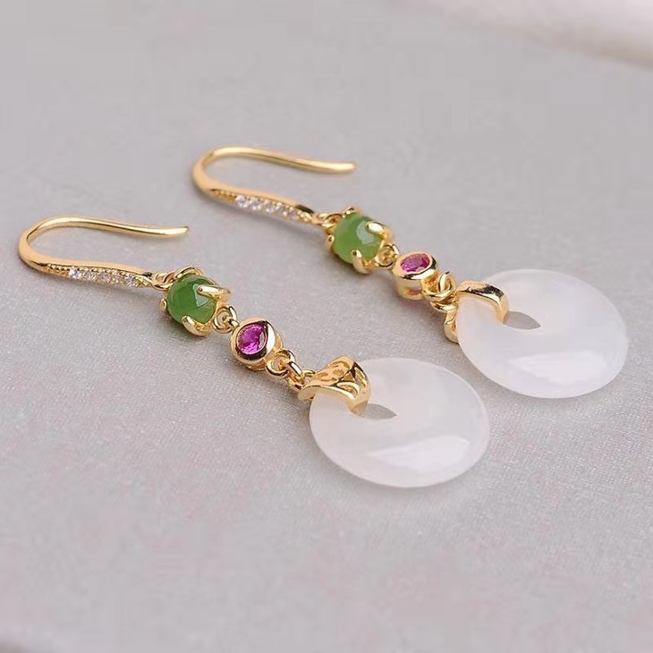 YR-平安扣耳环925银镶嵌耳坠白玉耳环女款
