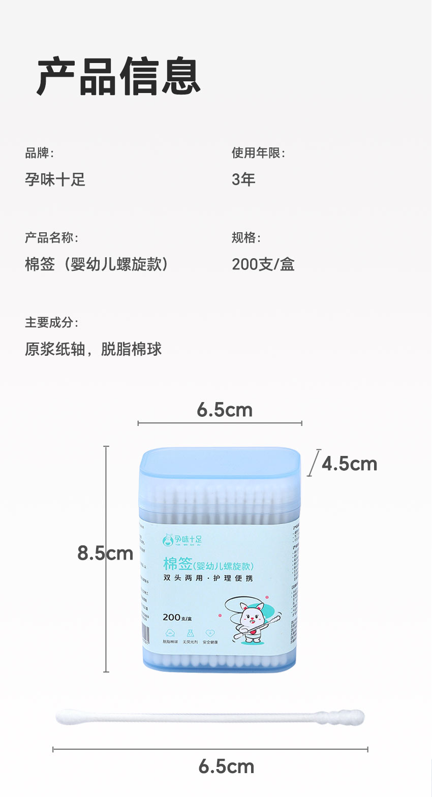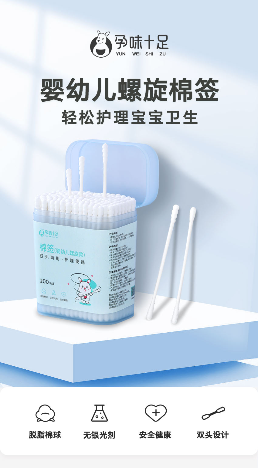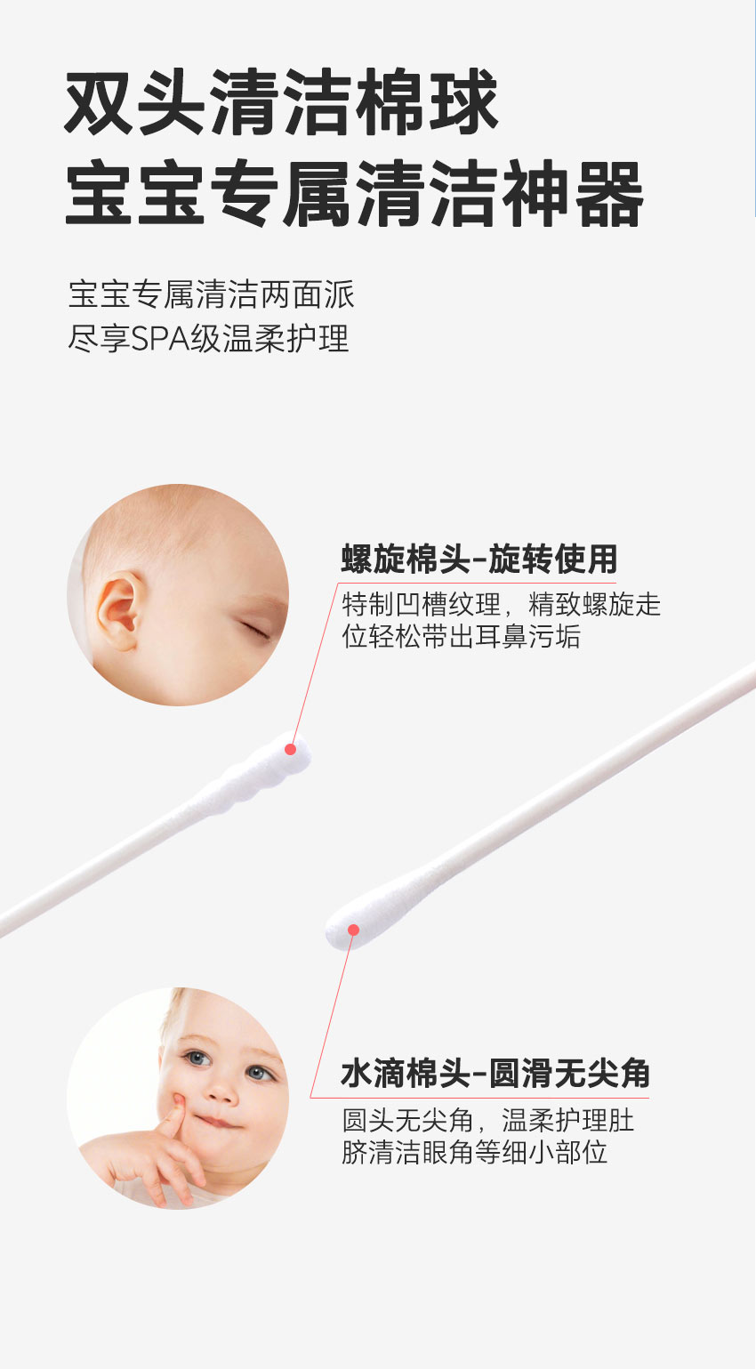 【品牌自营】孕味十足婴儿棉签新生宝宝专用鼻屎掏耳朵双头婴幼童超细新生棉棒