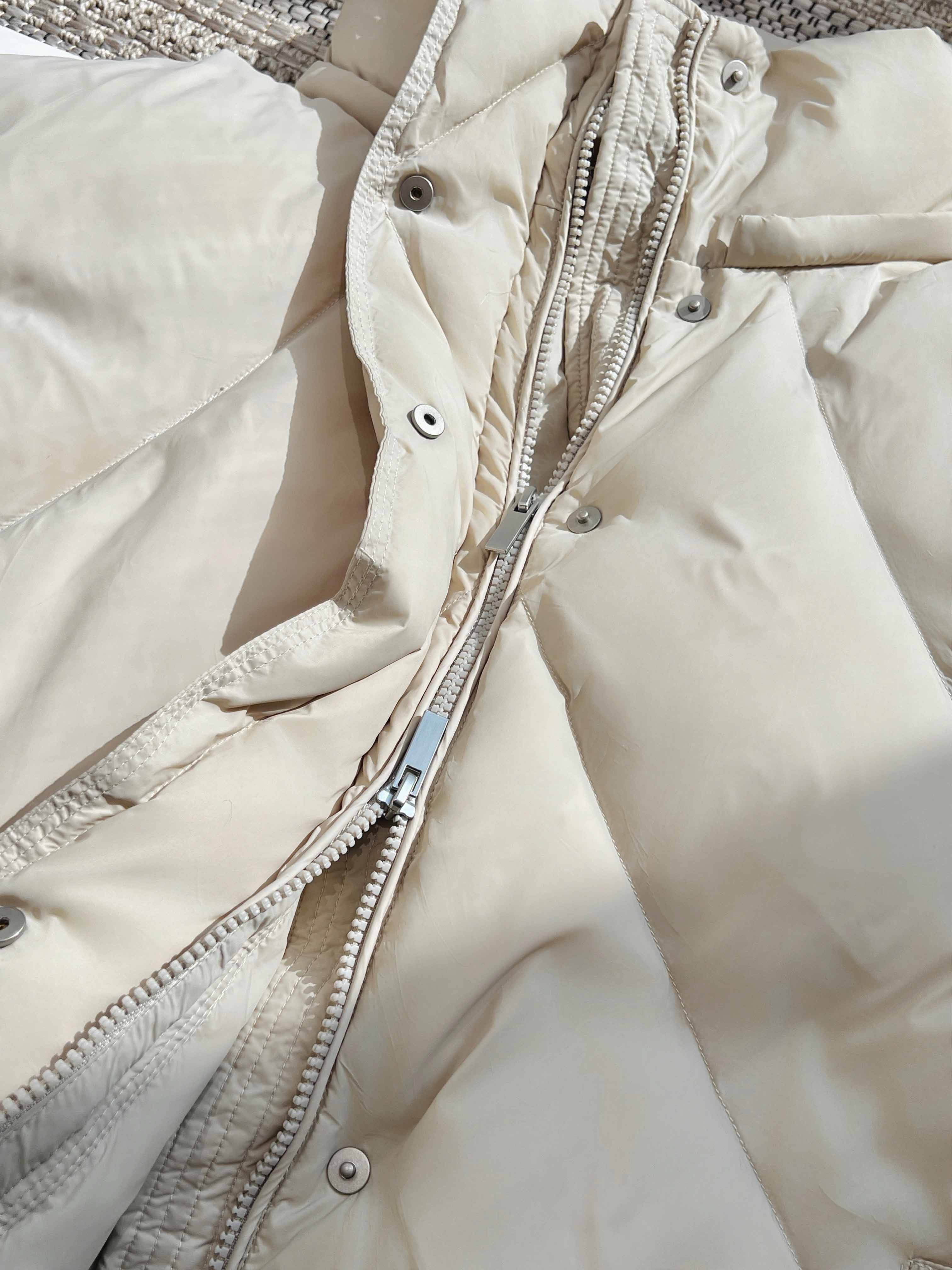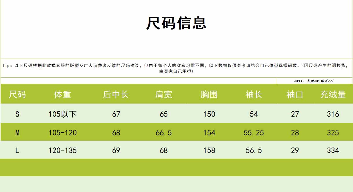 采用全羽绒填充,蓬松包裹,饱满不厚重,上身很轻但又很保暖~