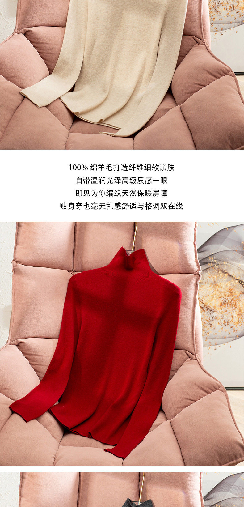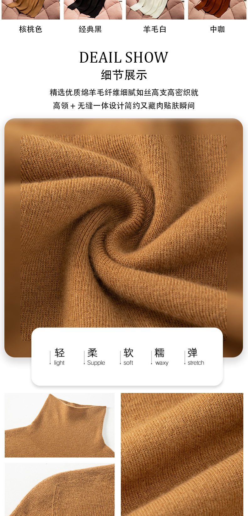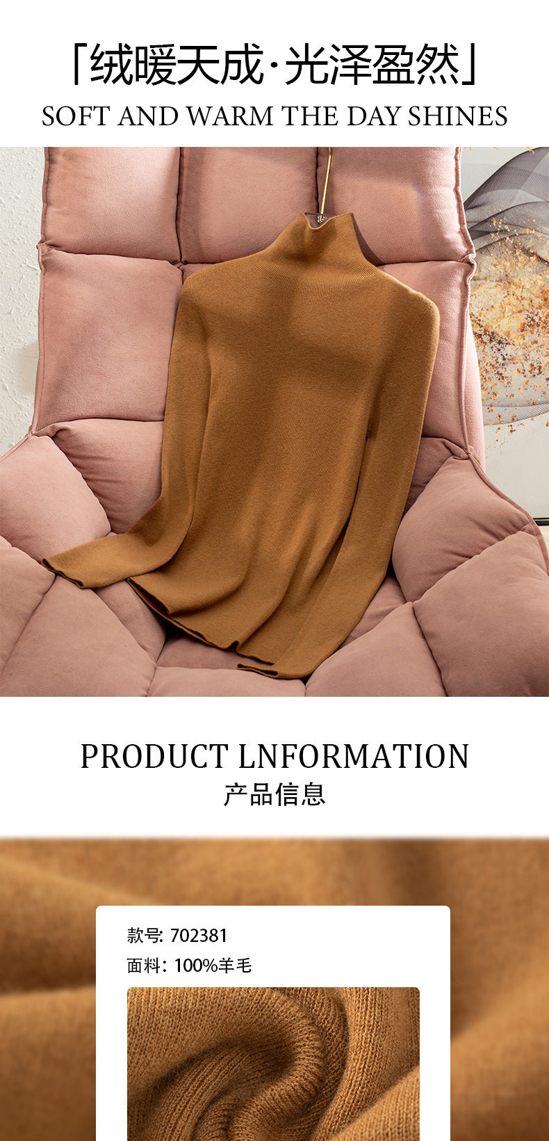「自」全新升级【铂金会员211/天猫279/差价68】(04631)洛诗琳加厚无缝一体高领羊毛衫2025冬季高级感显瘦针织上衣
