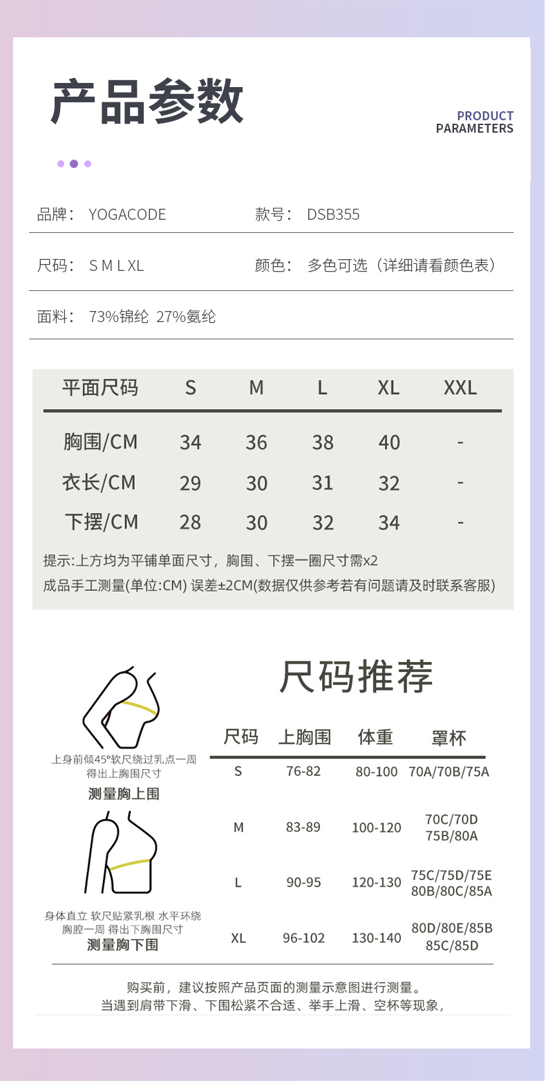【限时秒】YOGACODE火树银花/高强度无痕背扣防震裸感瑜伽胸围YCDS355