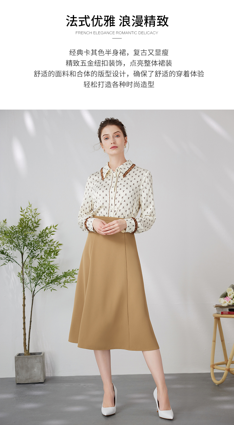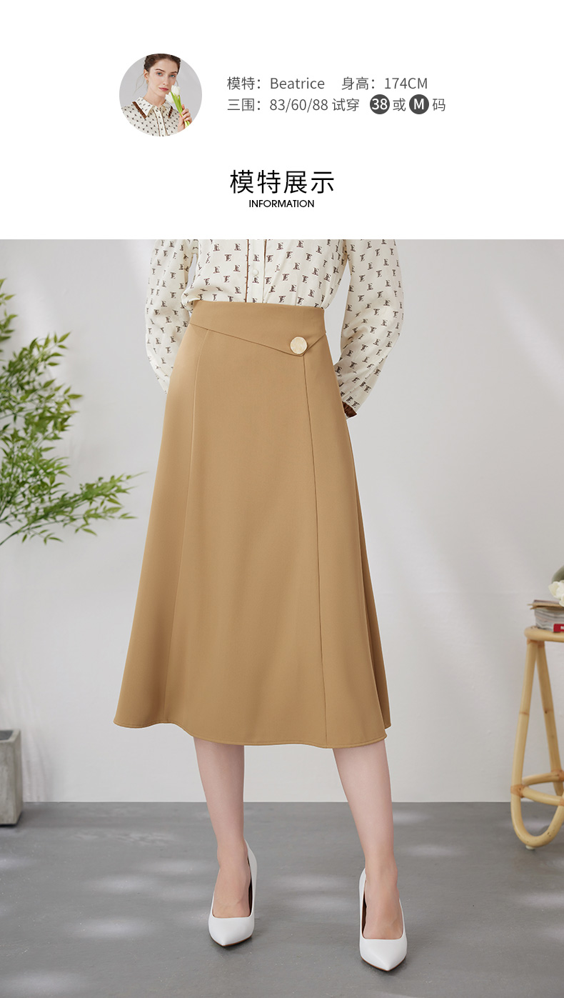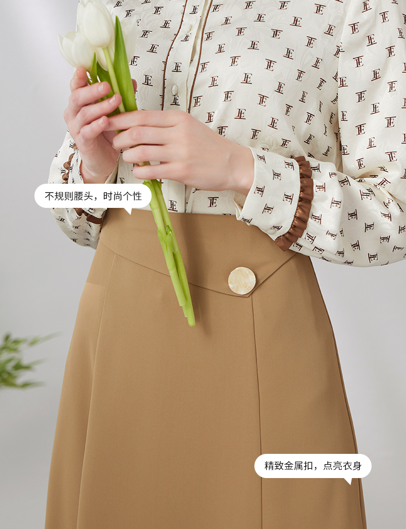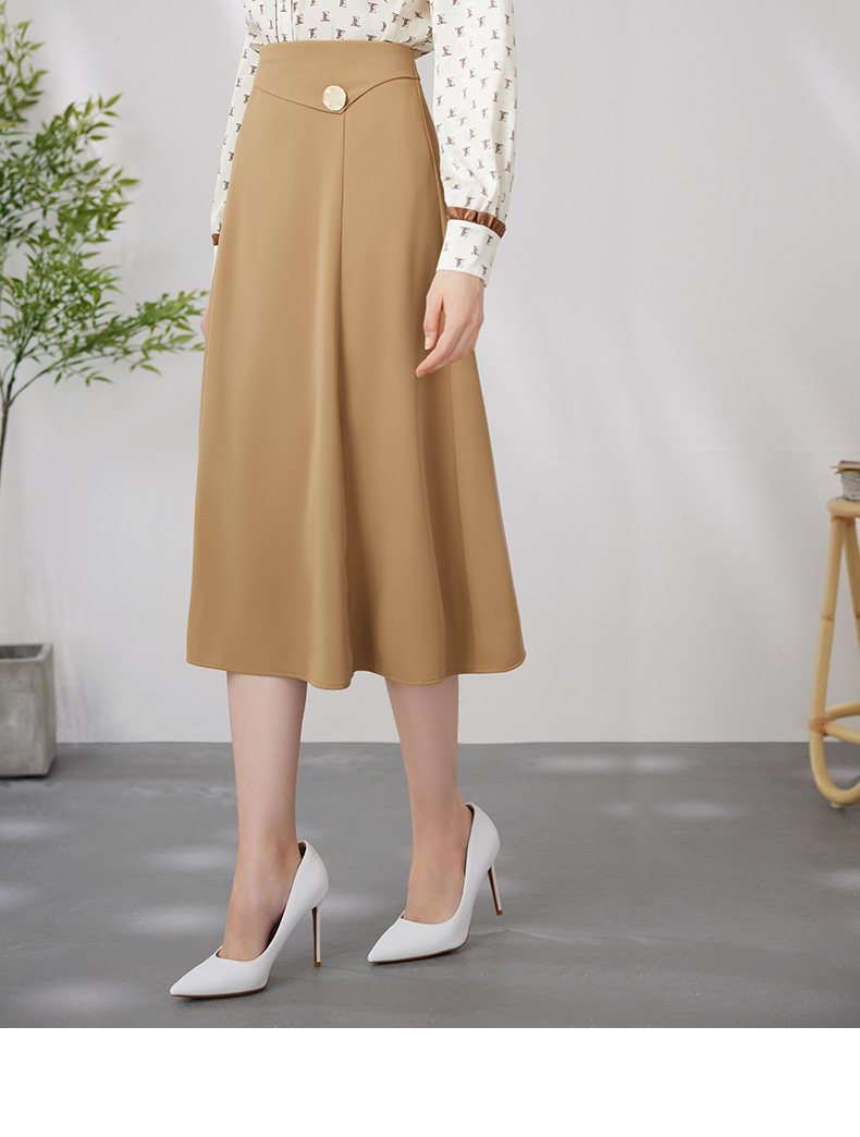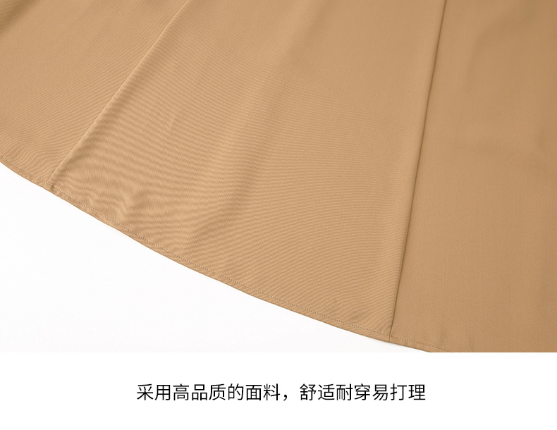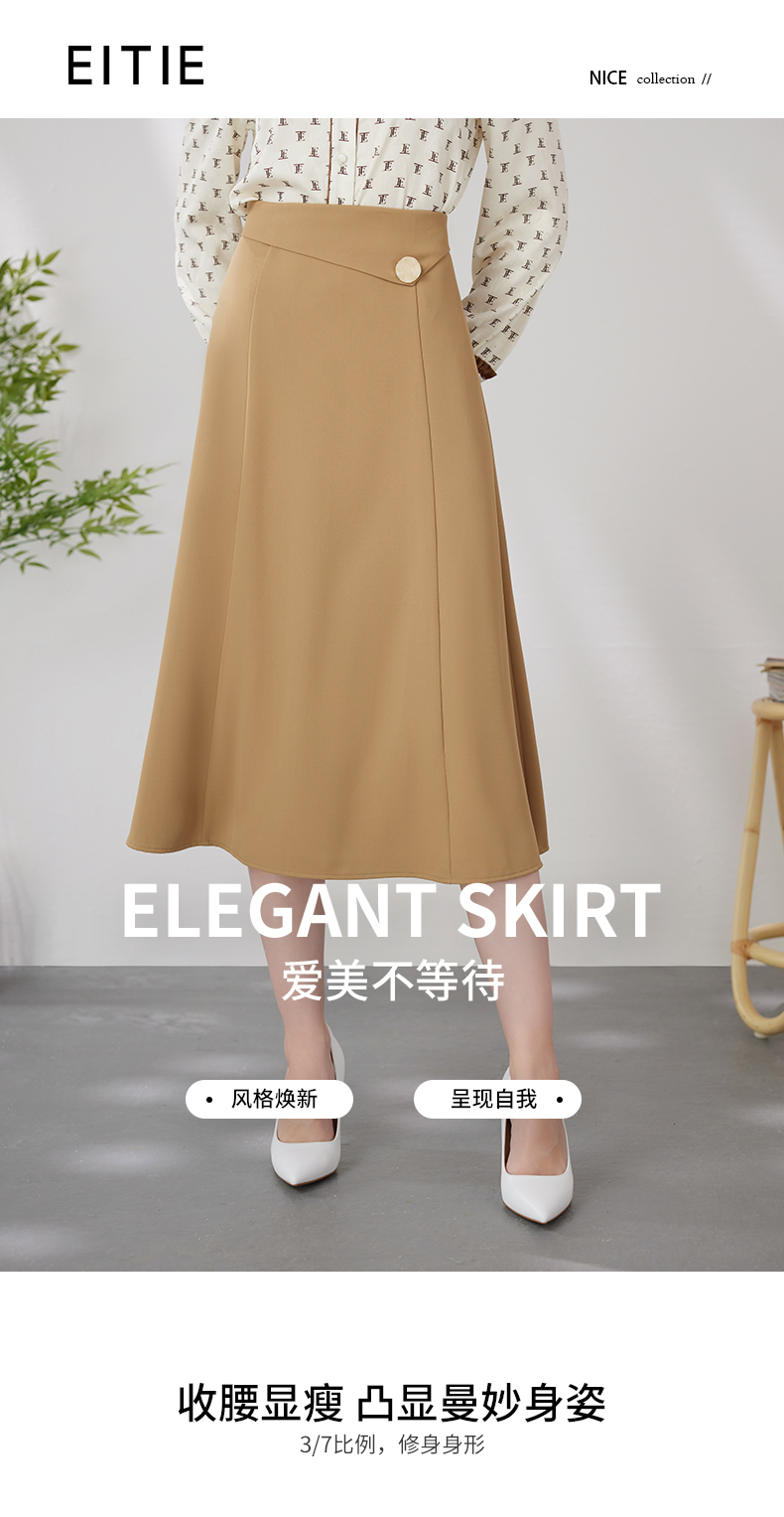 EITIE爱特爱卡其色高腰a字伞裙显瘦OL通勤百搭过膝半身裙24春新款A2406301
