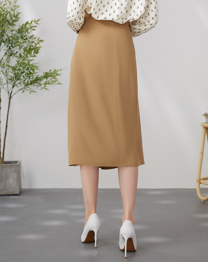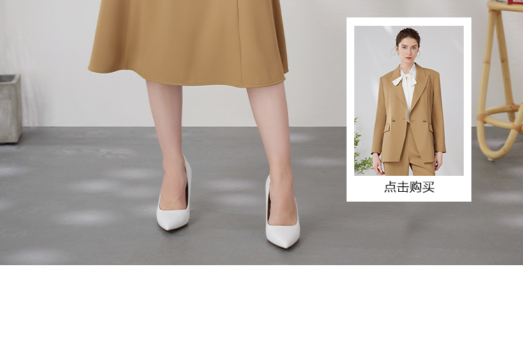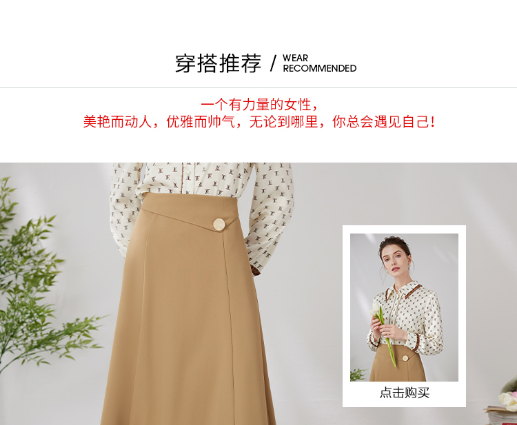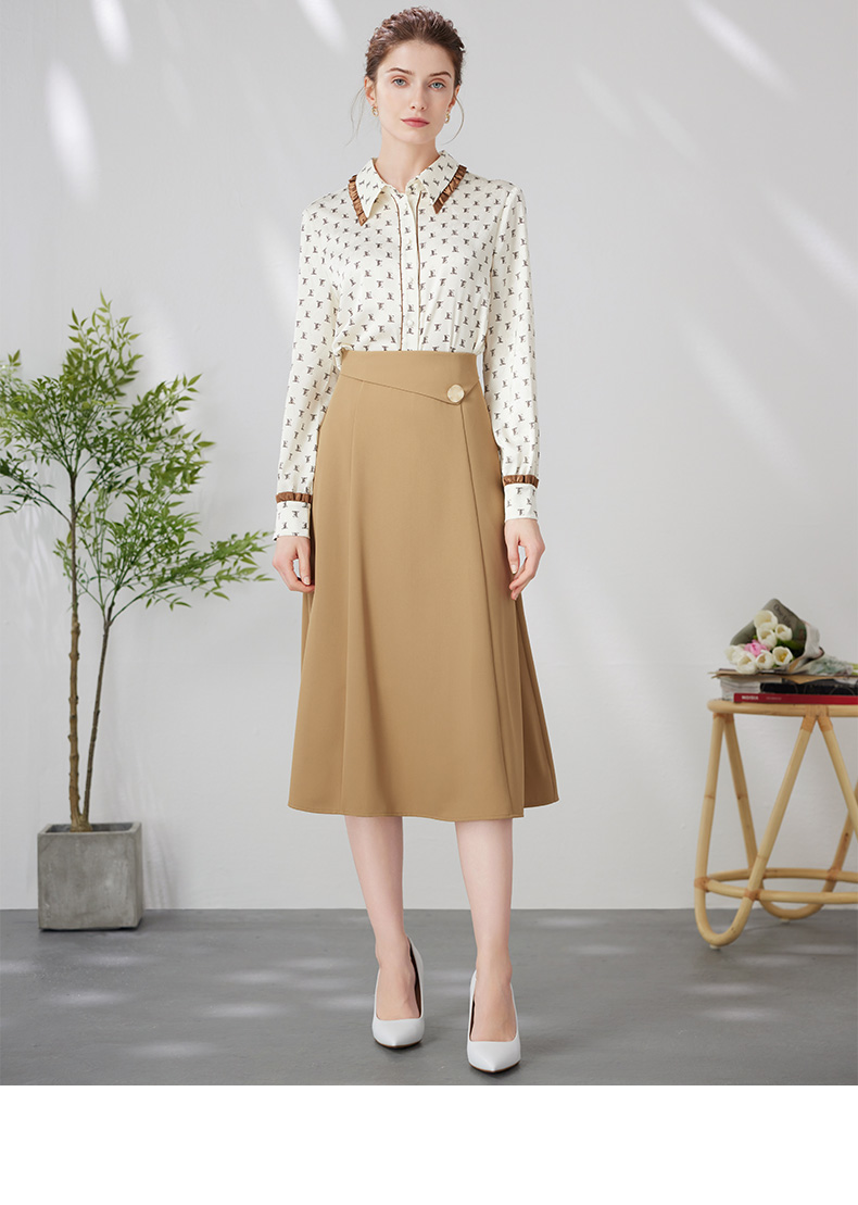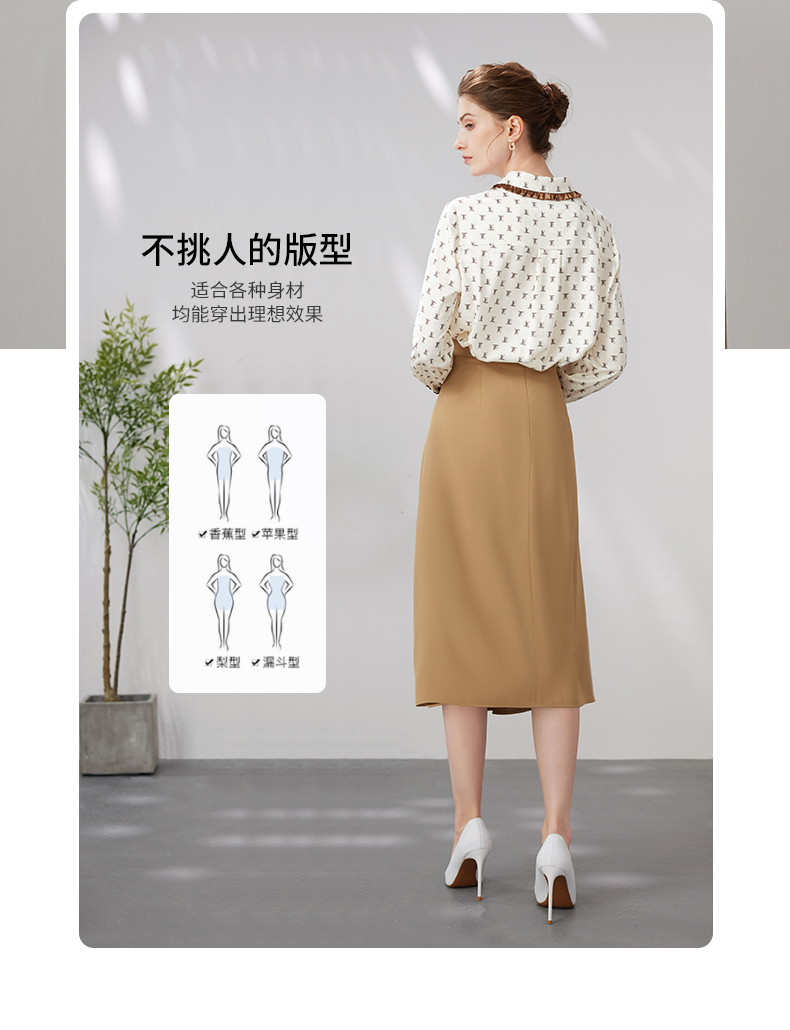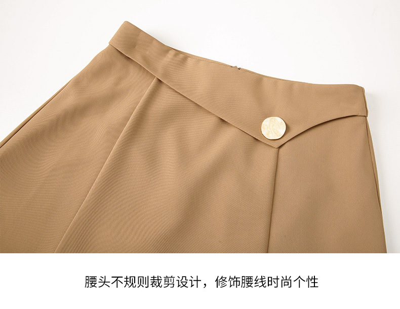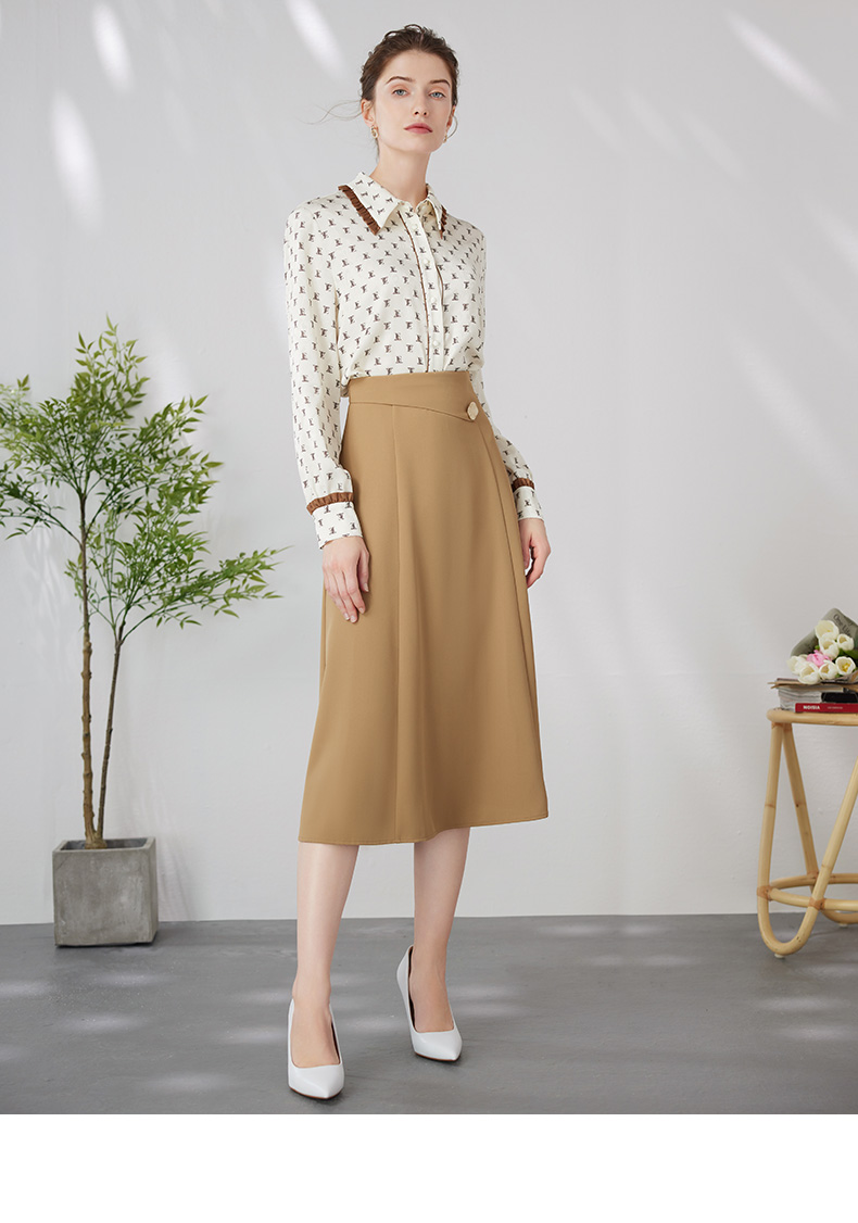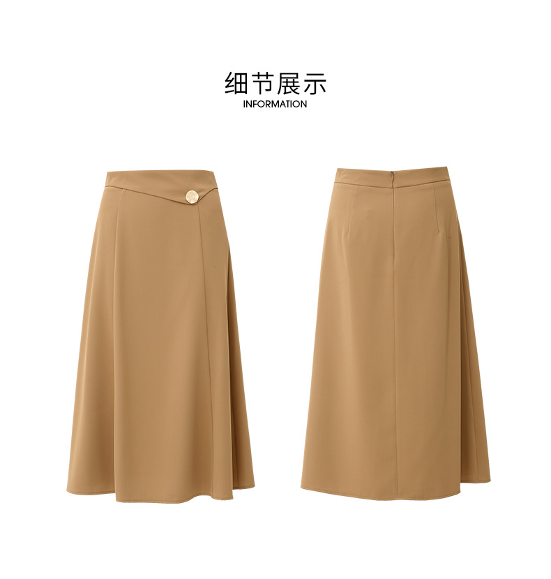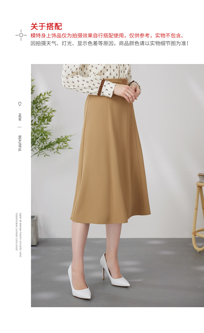 EITIE爱特爱卡其色高腰a字伞裙显瘦OL通勤百搭过膝半身裙24春新款A2406301