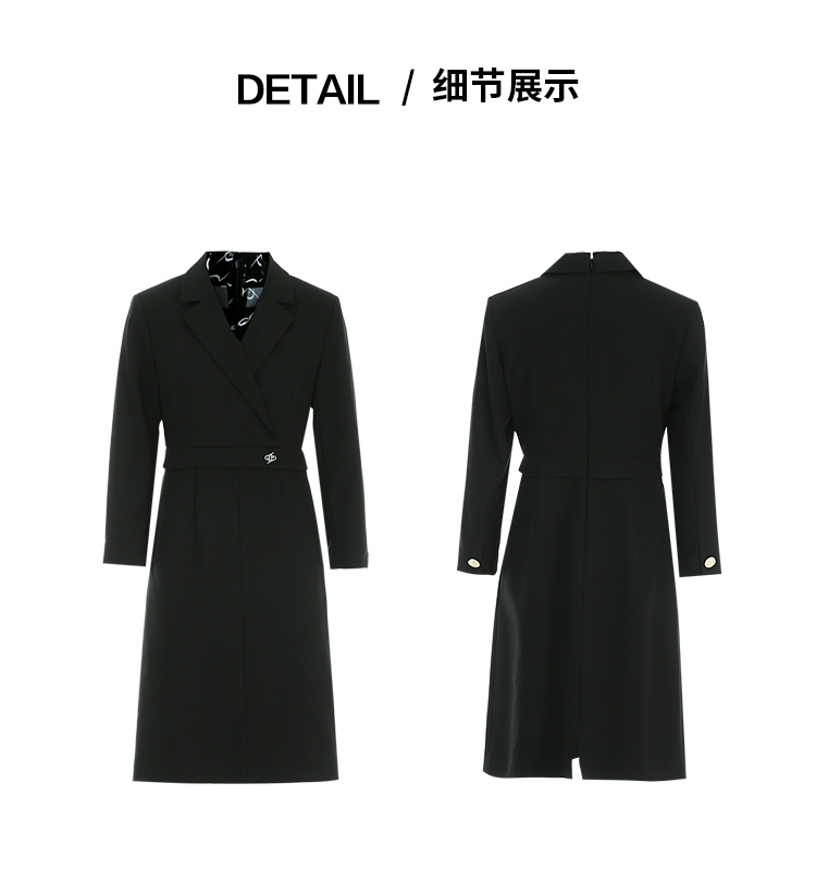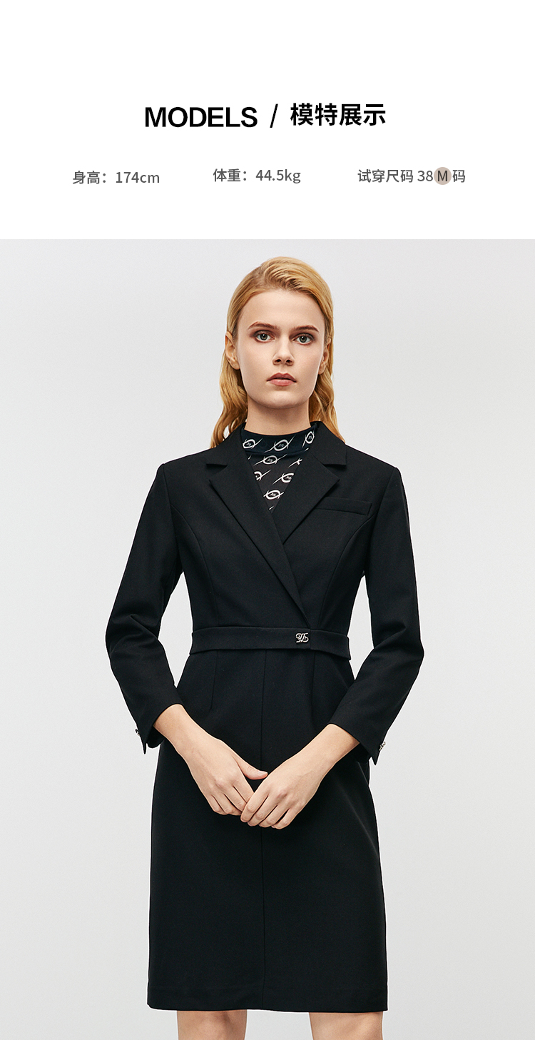 EITIE爱特爱秋季新款气质通勤精致翻领收腰显瘦西装连衣裙7907643