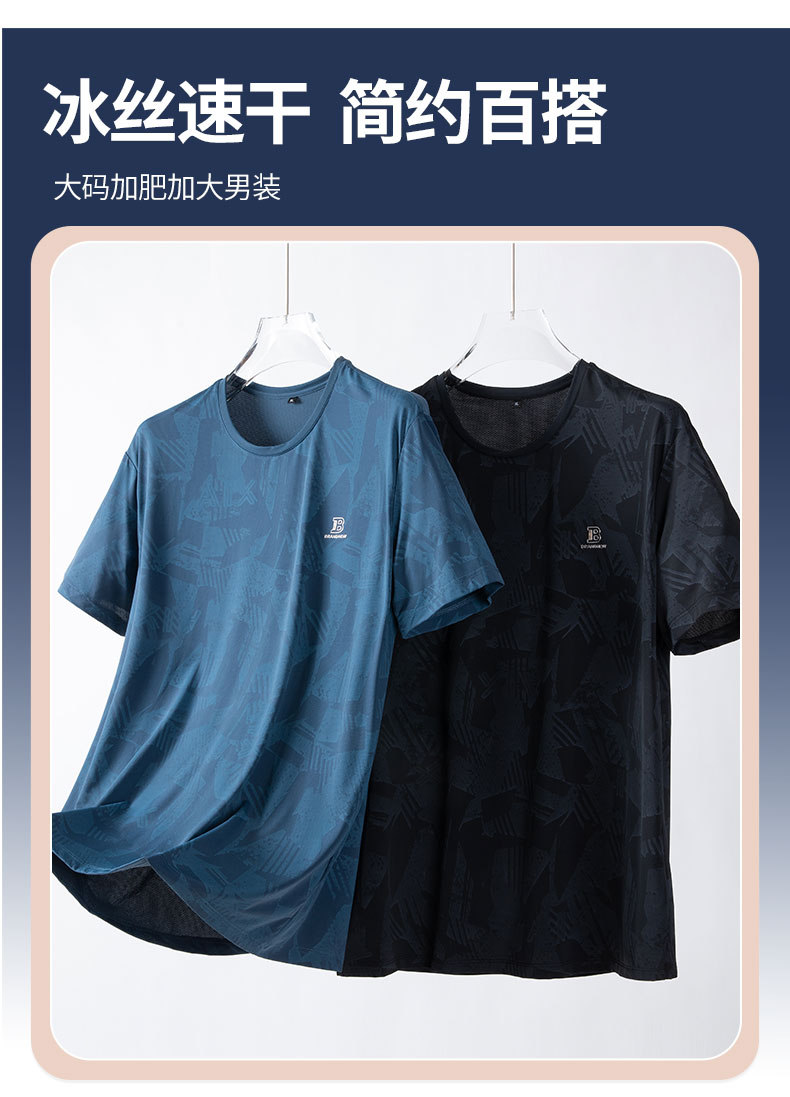 【冰丝速干】【新款DPS】大依优型大码圆领短袖T恤夏季加肥加大肥佬休闲宽松透气上衣男士半袖夏装潮款