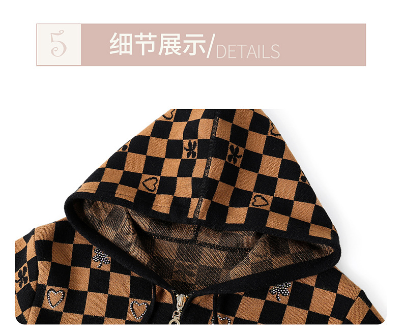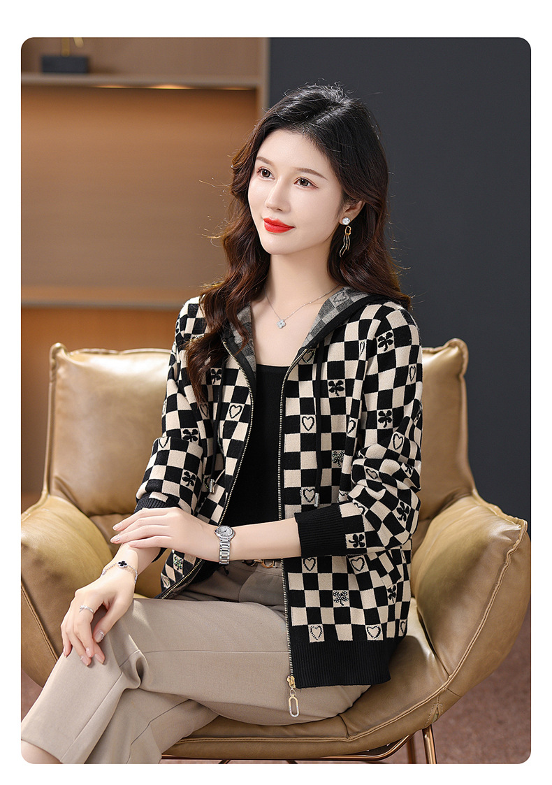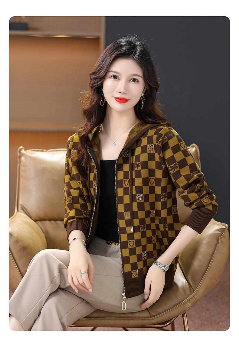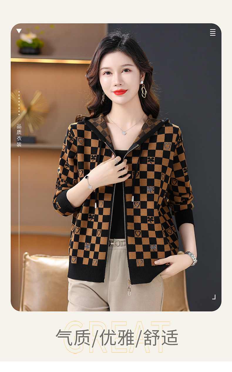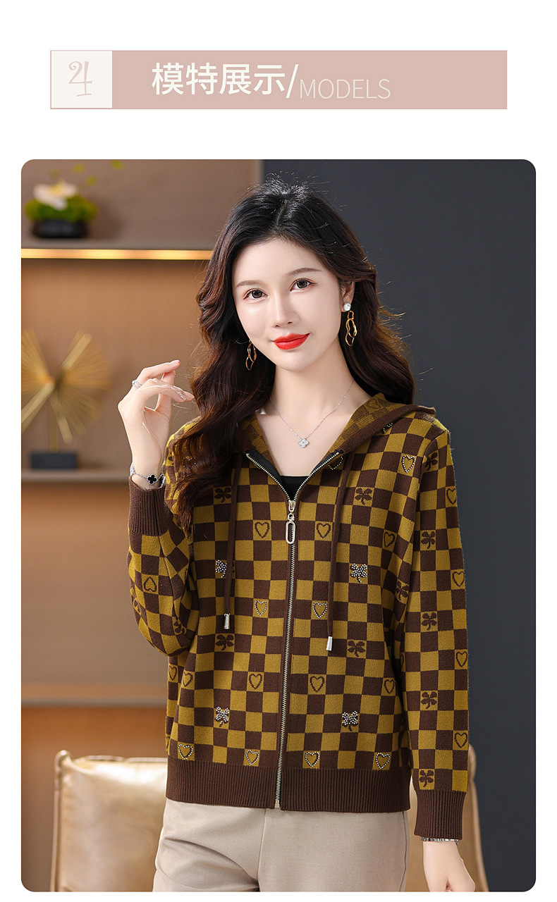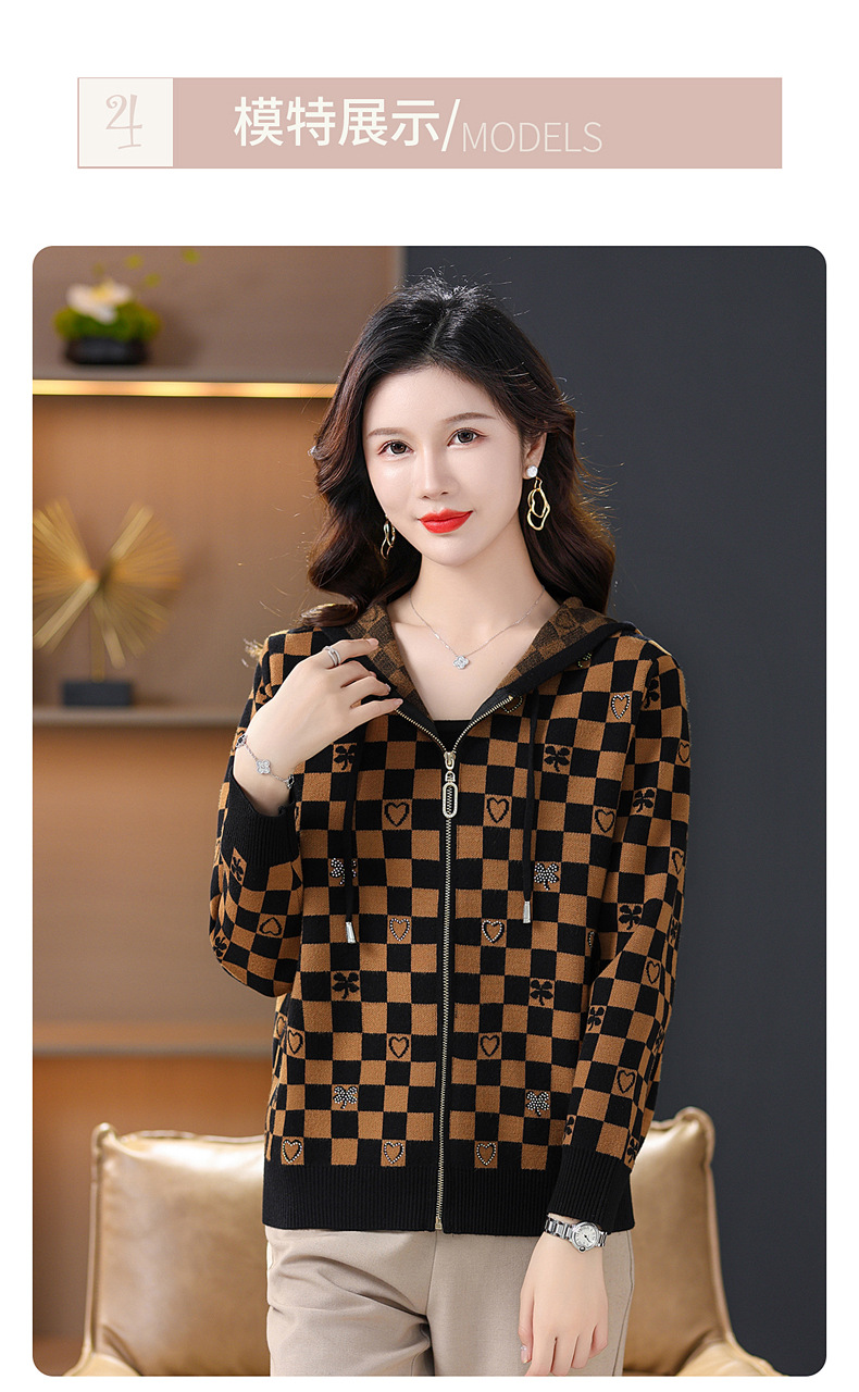 2023年新款洋气针织开衫格子连帽短外套CC-21-8106