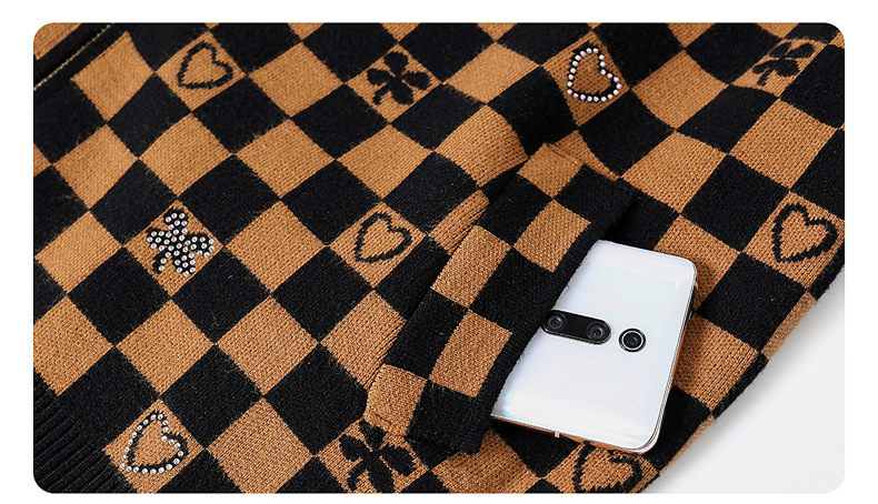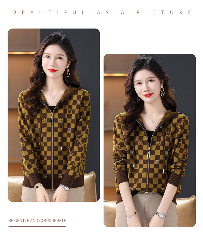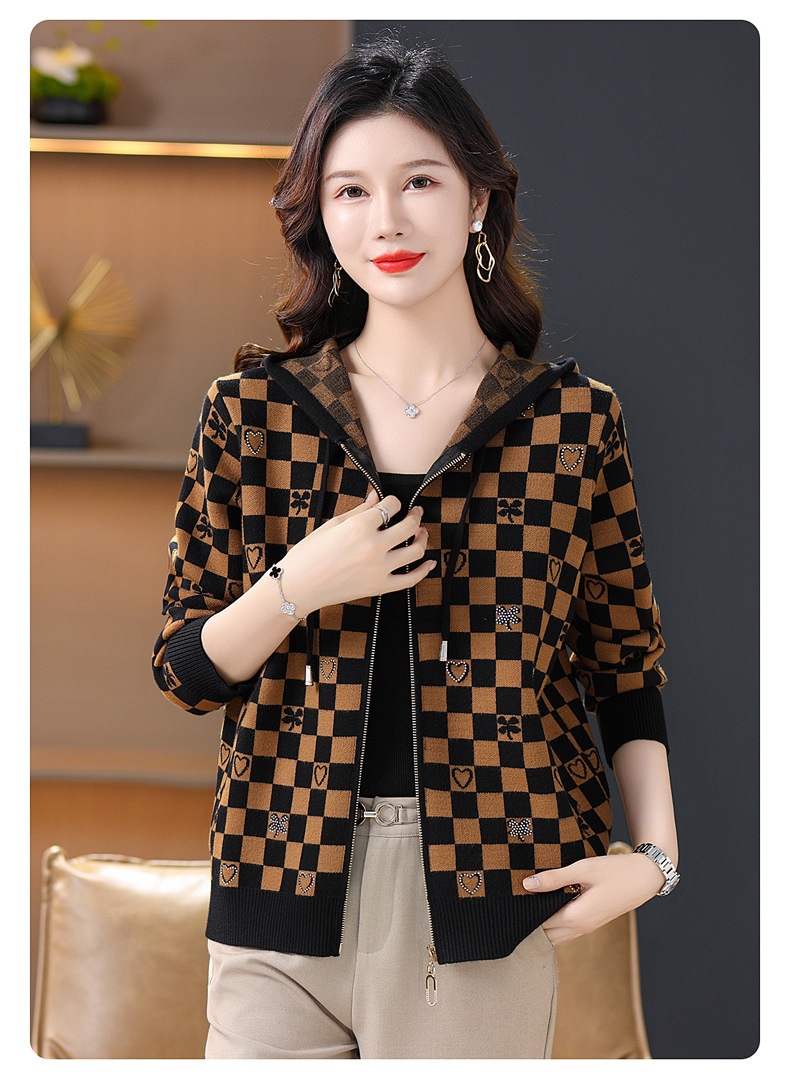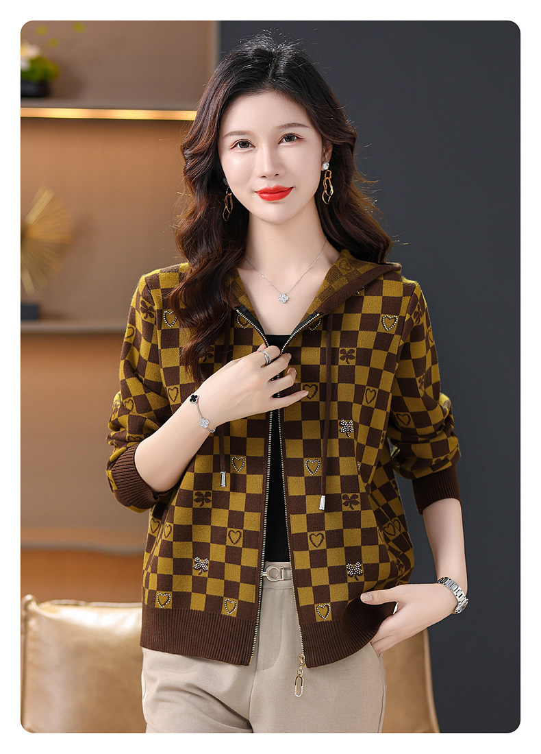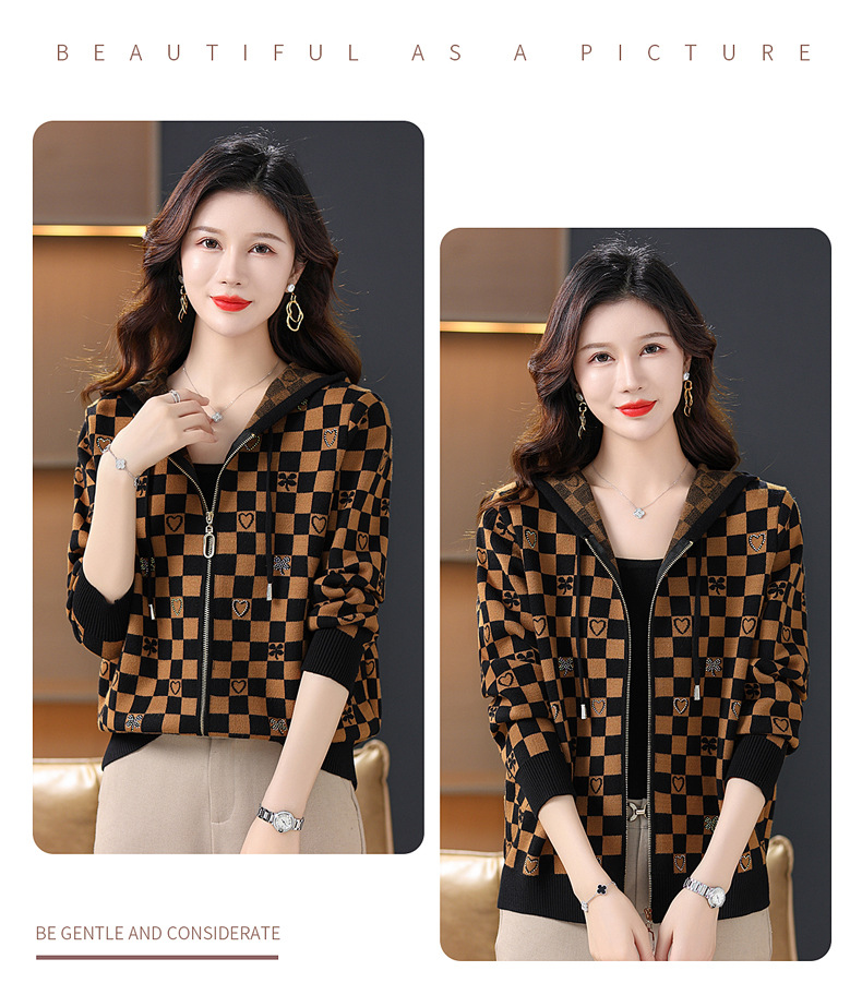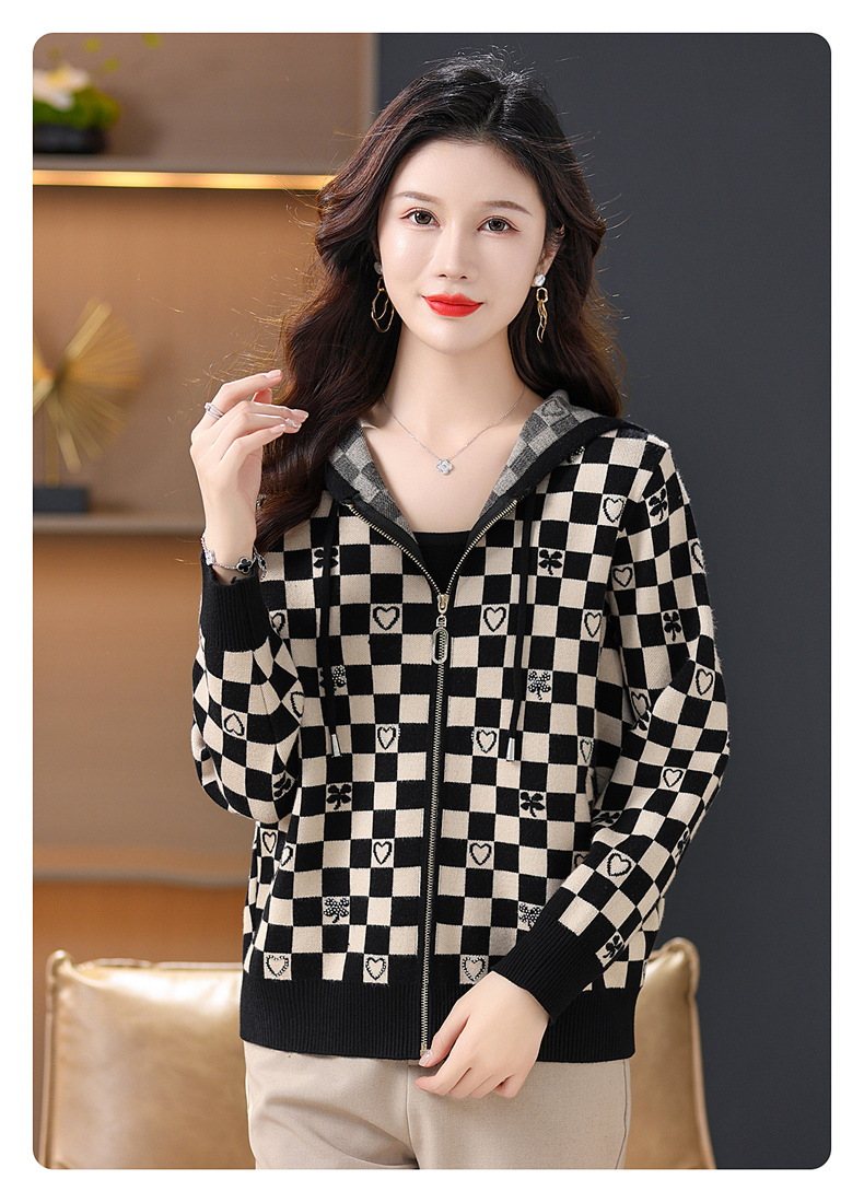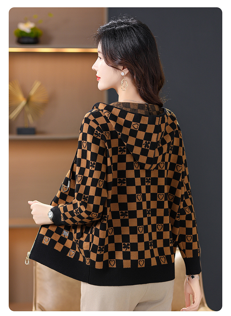 2023年新款洋气针织开衫格子连帽短外套CC-21-8106