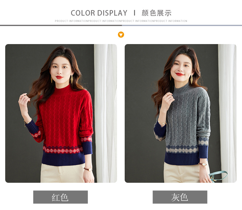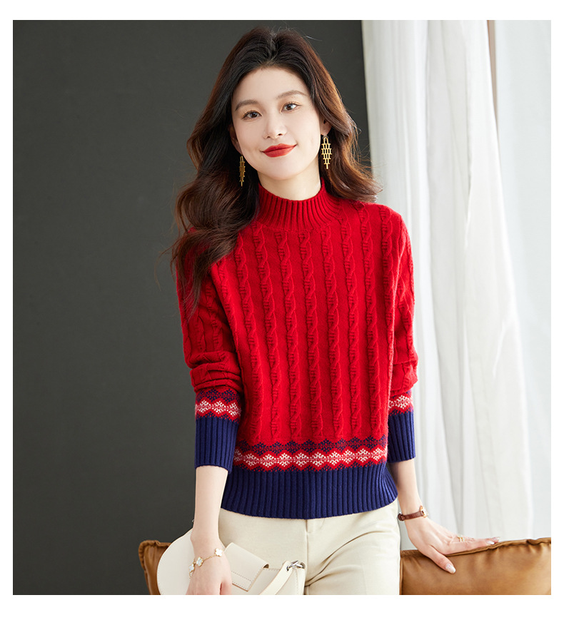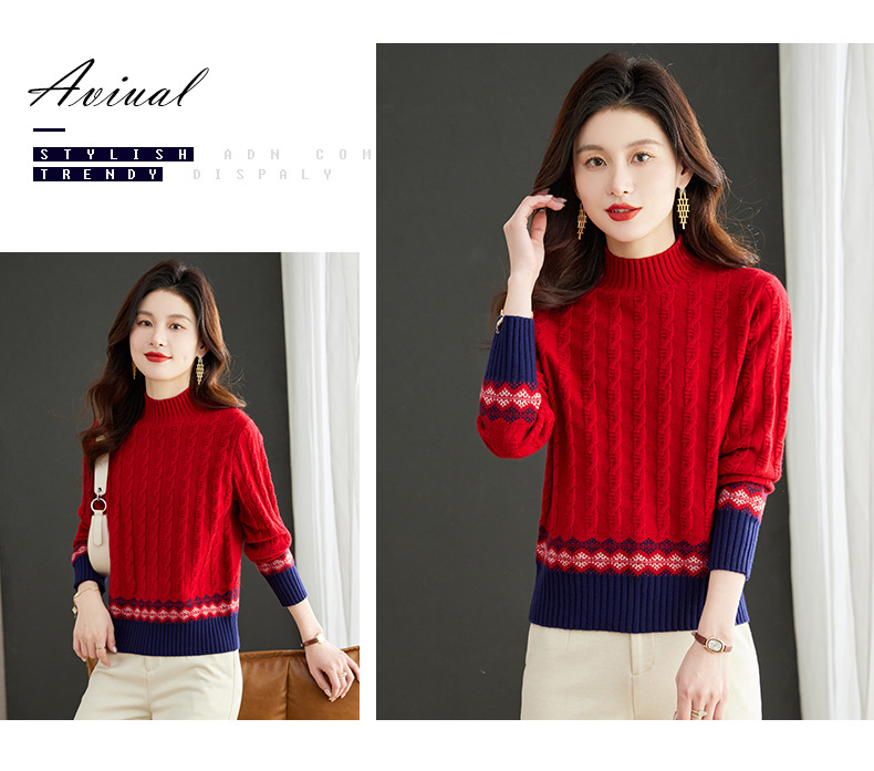 秋冬新款,红色半高领毛衣女加厚内搭打底衫2024本命年龙年衣服CC-MY-1062
