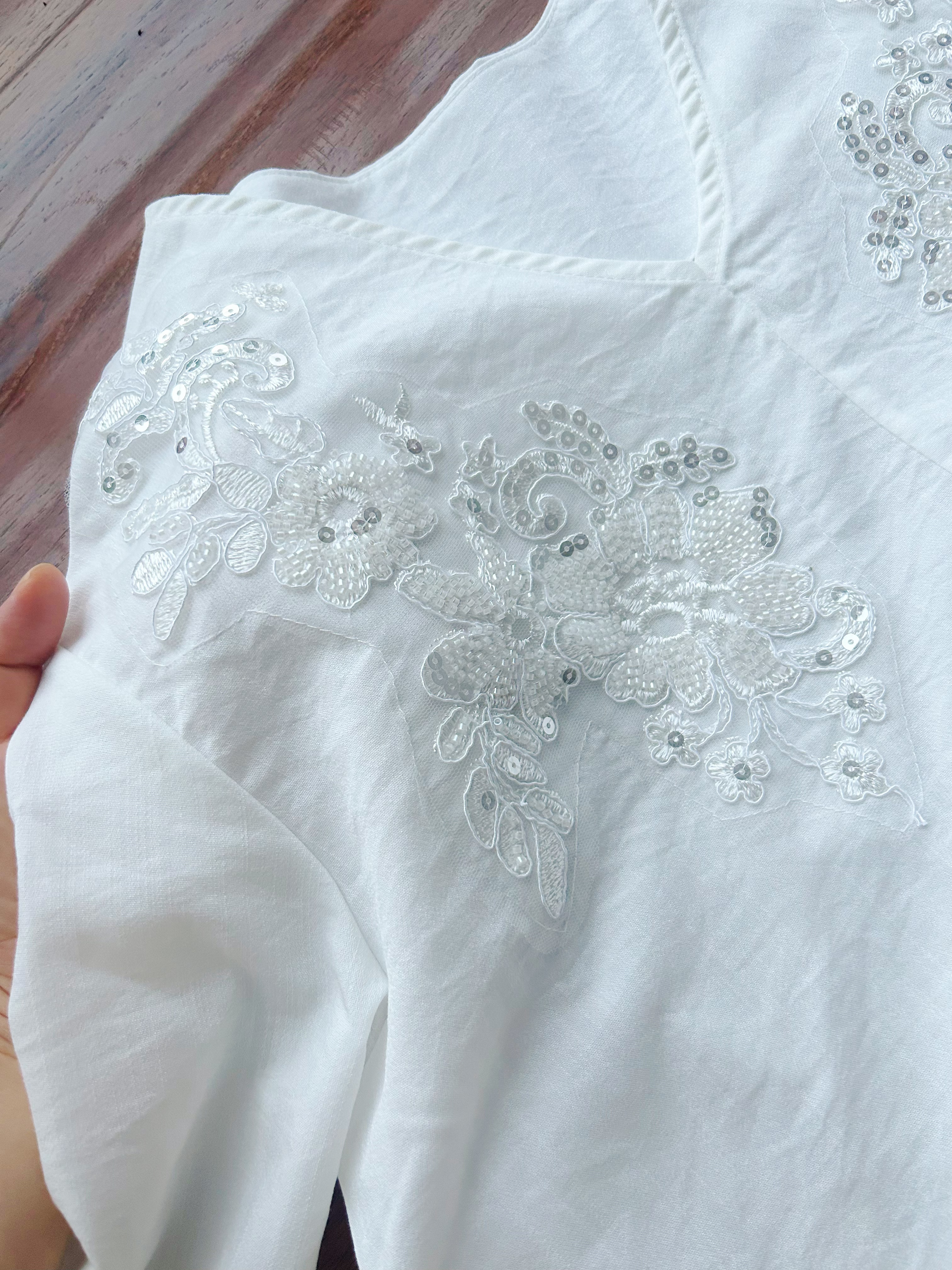 ✅重工立体盘绣加珠片,通过绣花的细节演绎出不一样的韵味。