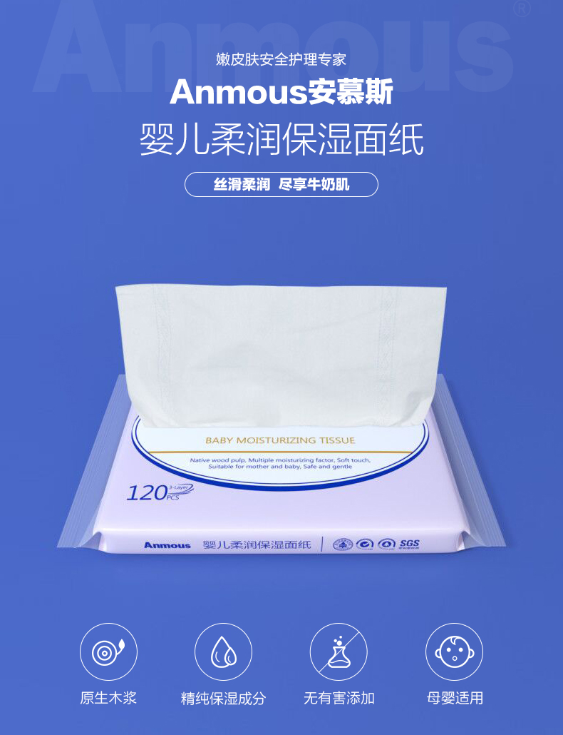 安慕斯乳霜保湿纸婴儿手口柔纸巾宝宝面巾纸云柔巾便携装40*5包 鼻子贵族 奢宠宝宝