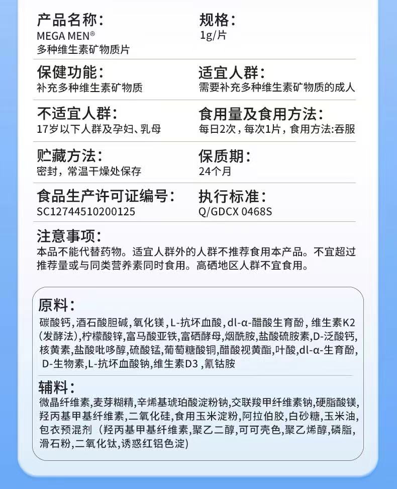 健安喜男士多种维生素矿物质 片60片-159654