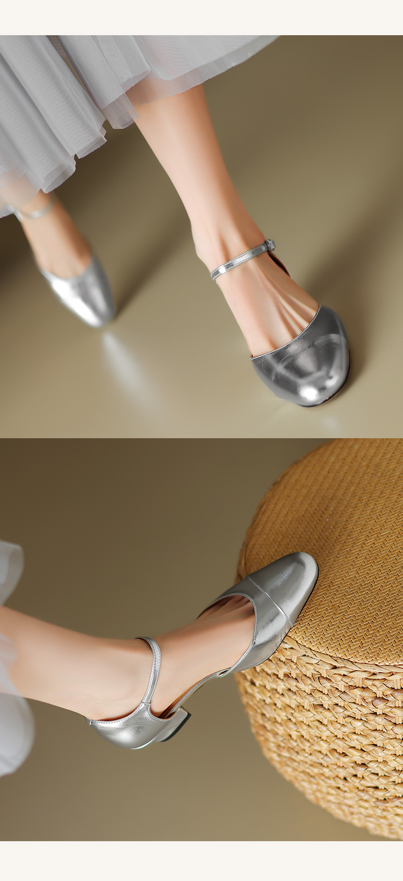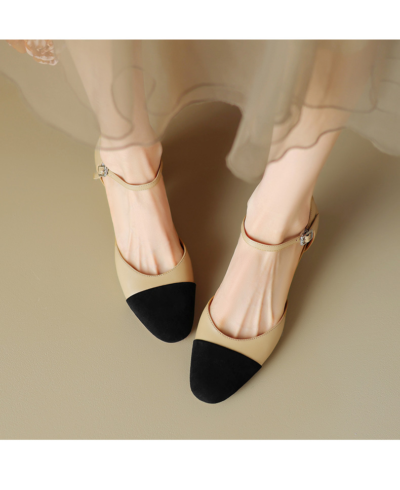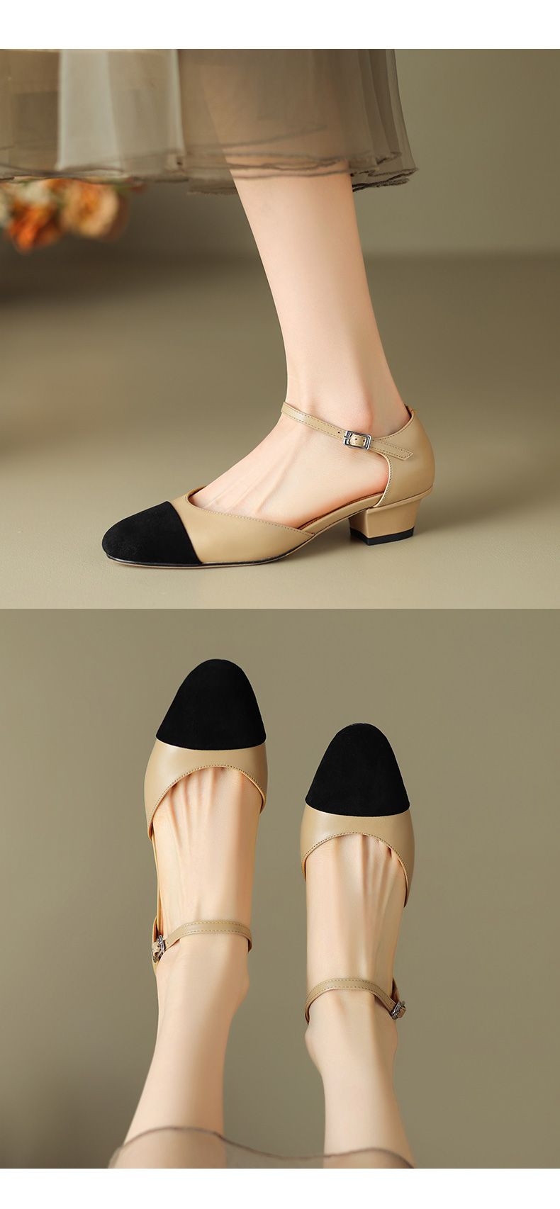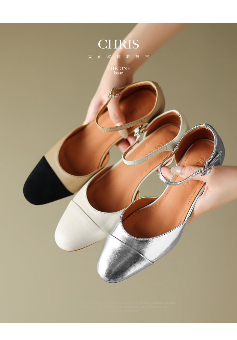 时尚小香风,舒适纯色真皮圆头中空凉鞋HB-Z134