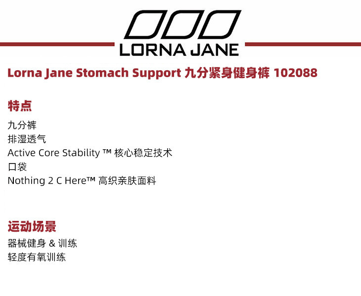 【清仓秒】澳洲Lorna Jane Stomach Support 九分紧身健身裤 102088(清仓产品,收货7天内支持调货、不退款)