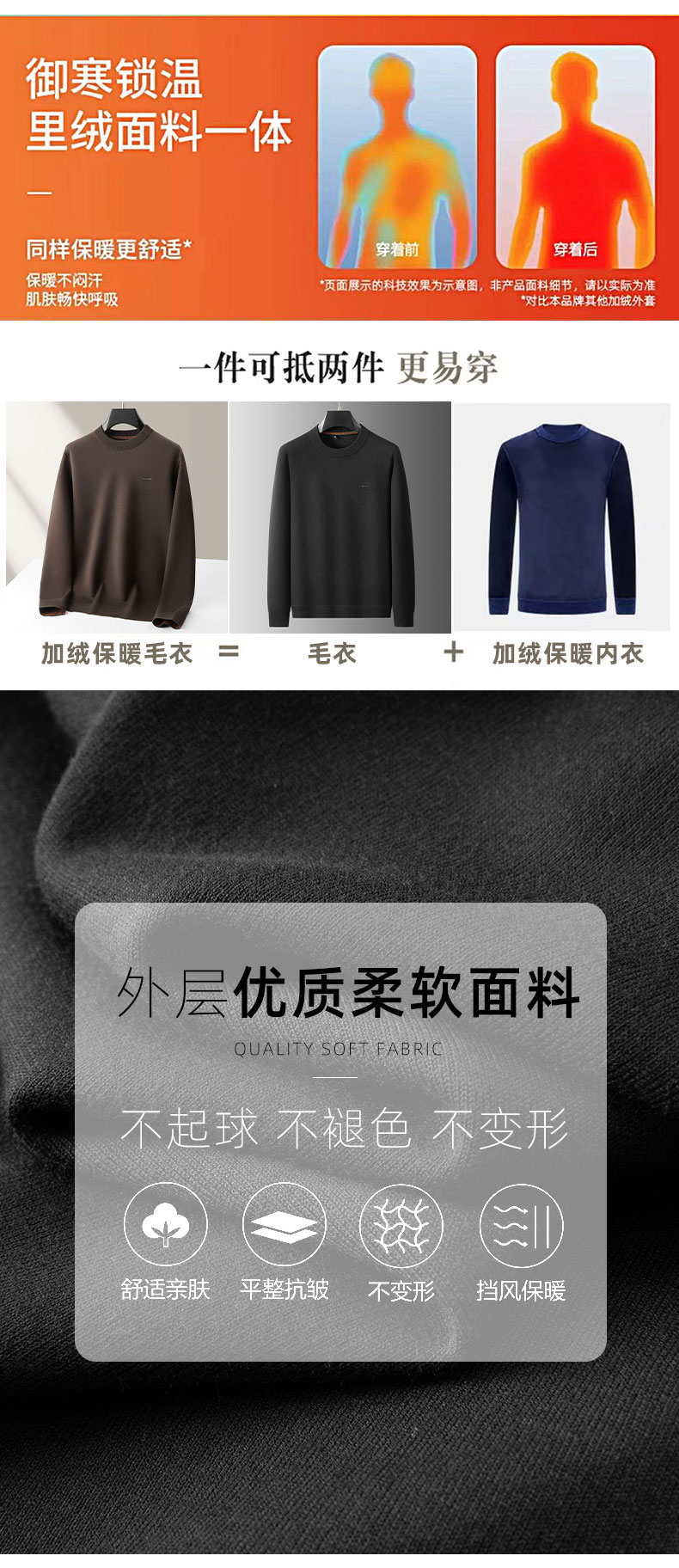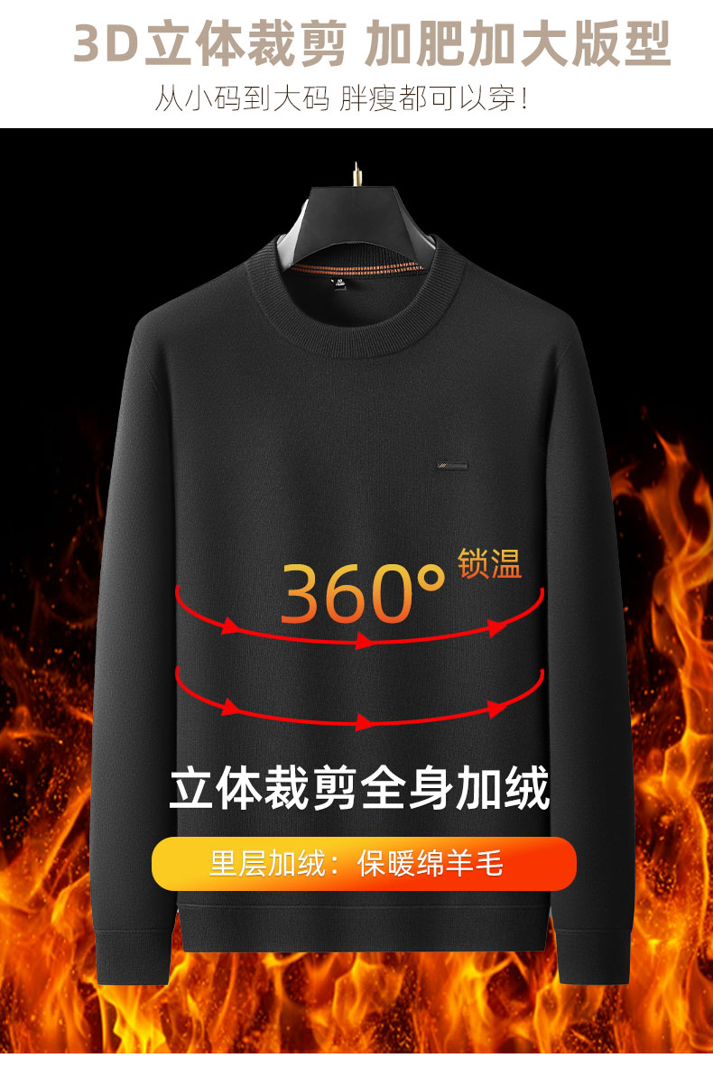 【DKP】大依优型大码男装加绒针织打底衫圆领加绒上衣休闲百搭加肥加大码