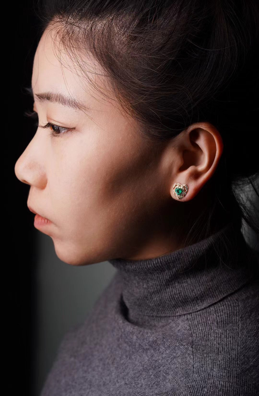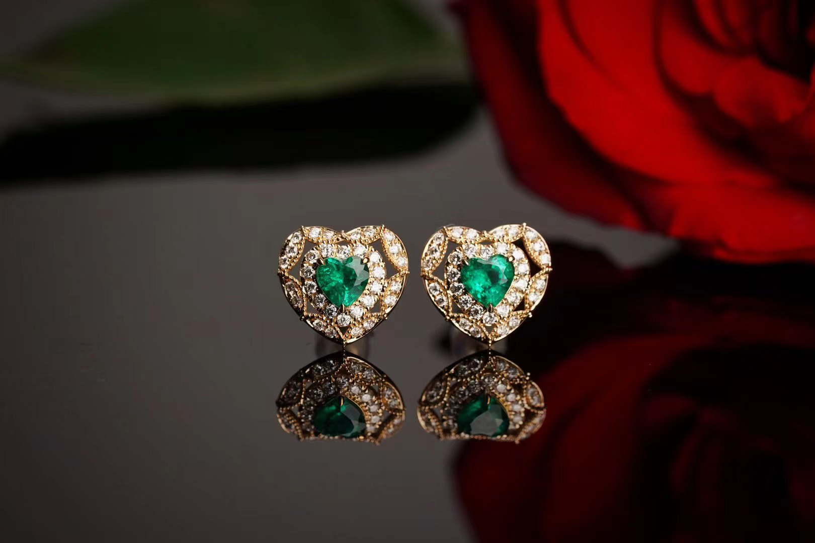 【喆】祖母绿爱心耳钉