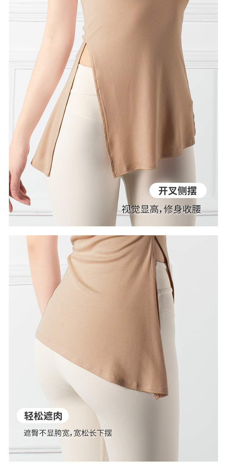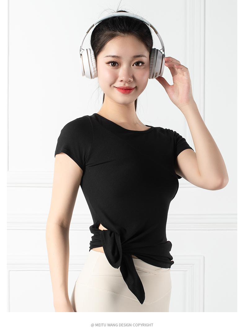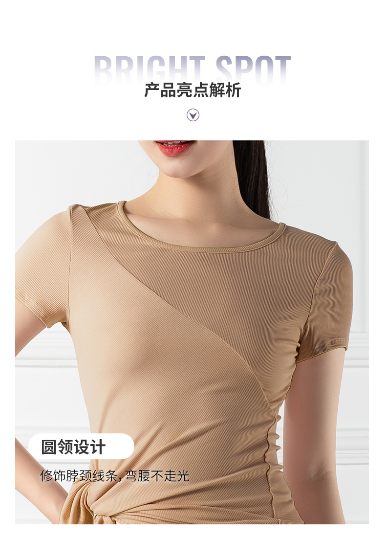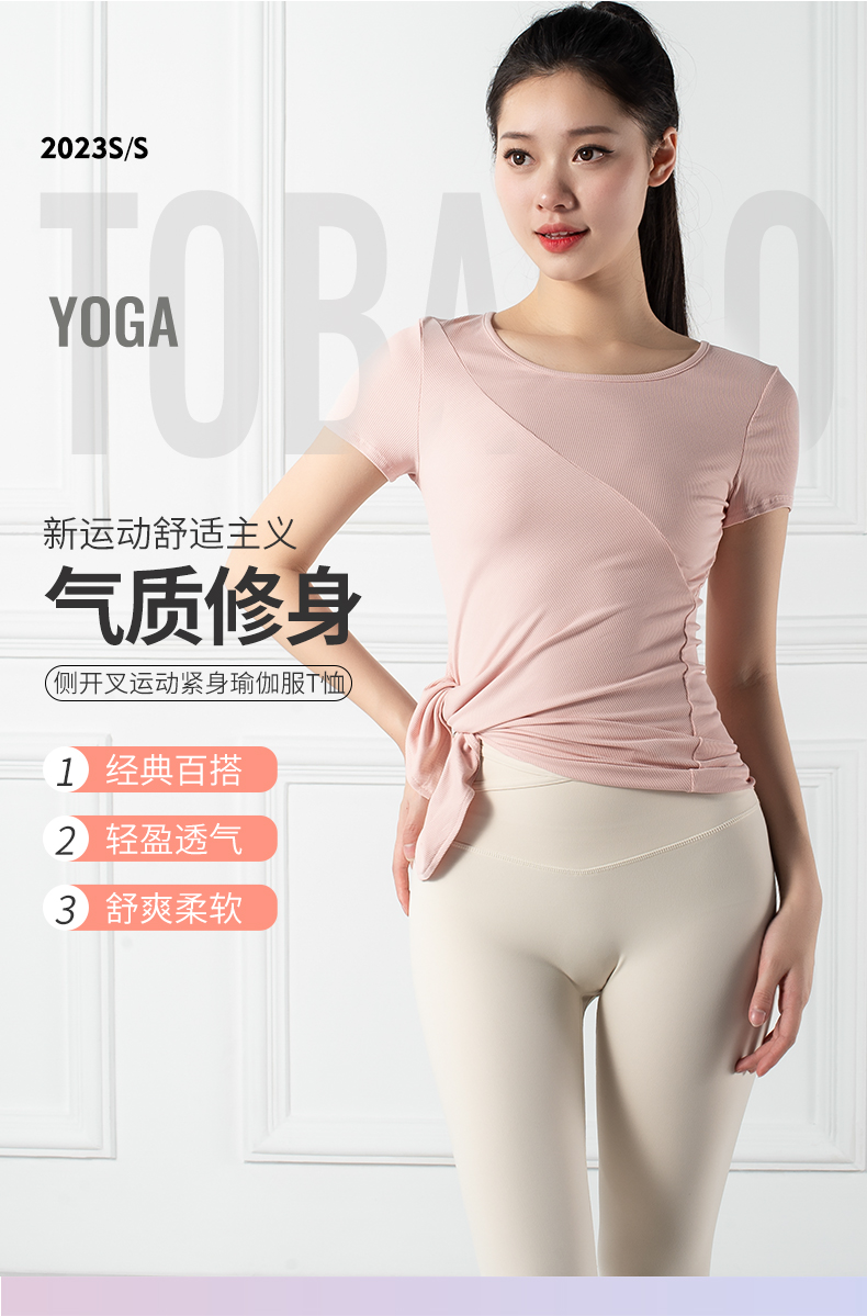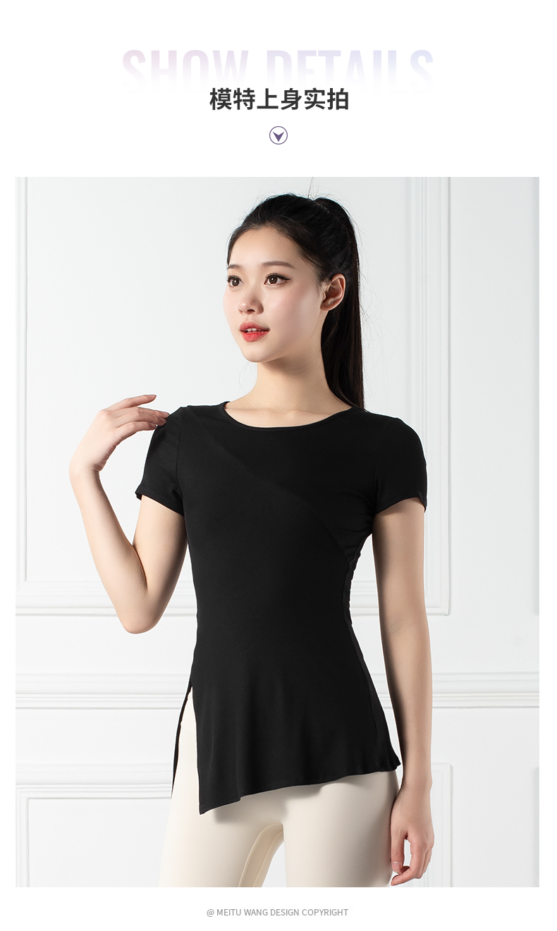 跃牌【禅语梵心系列】下摆侧开叉短袖瑜伽服健身T恤F2144 (不带胸垫)