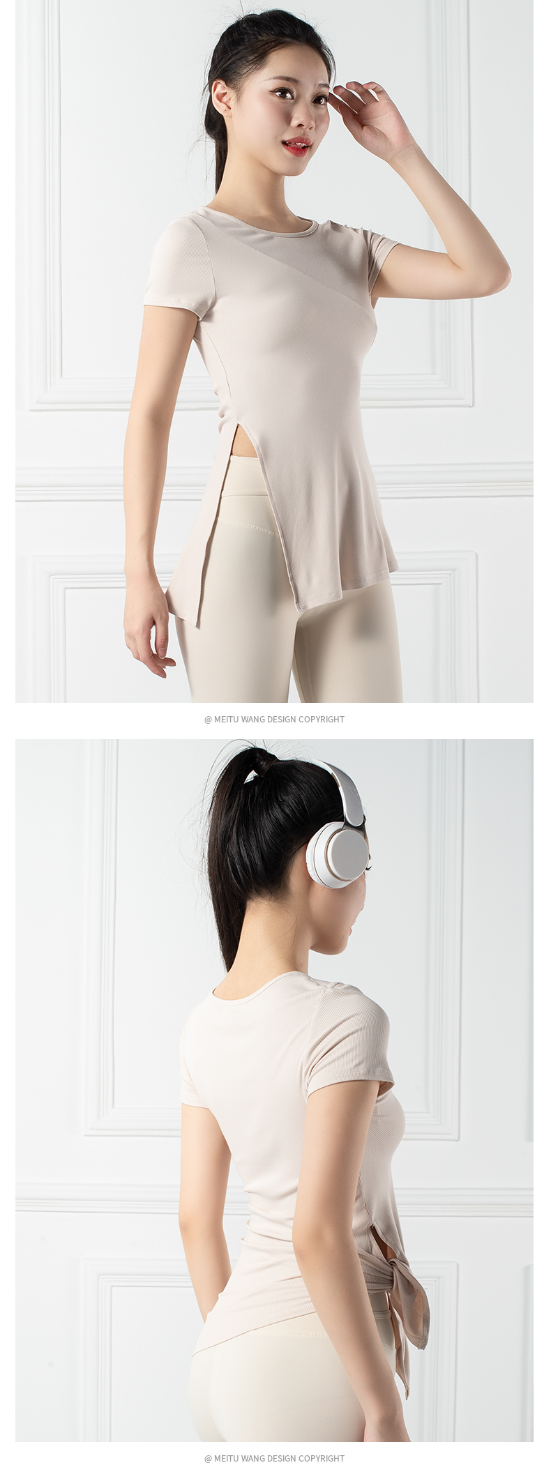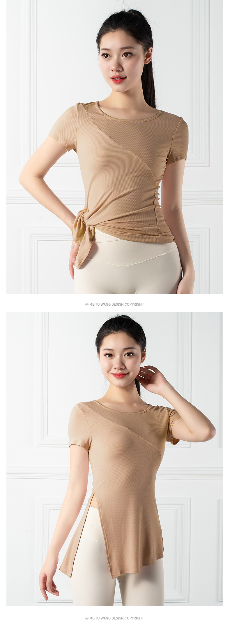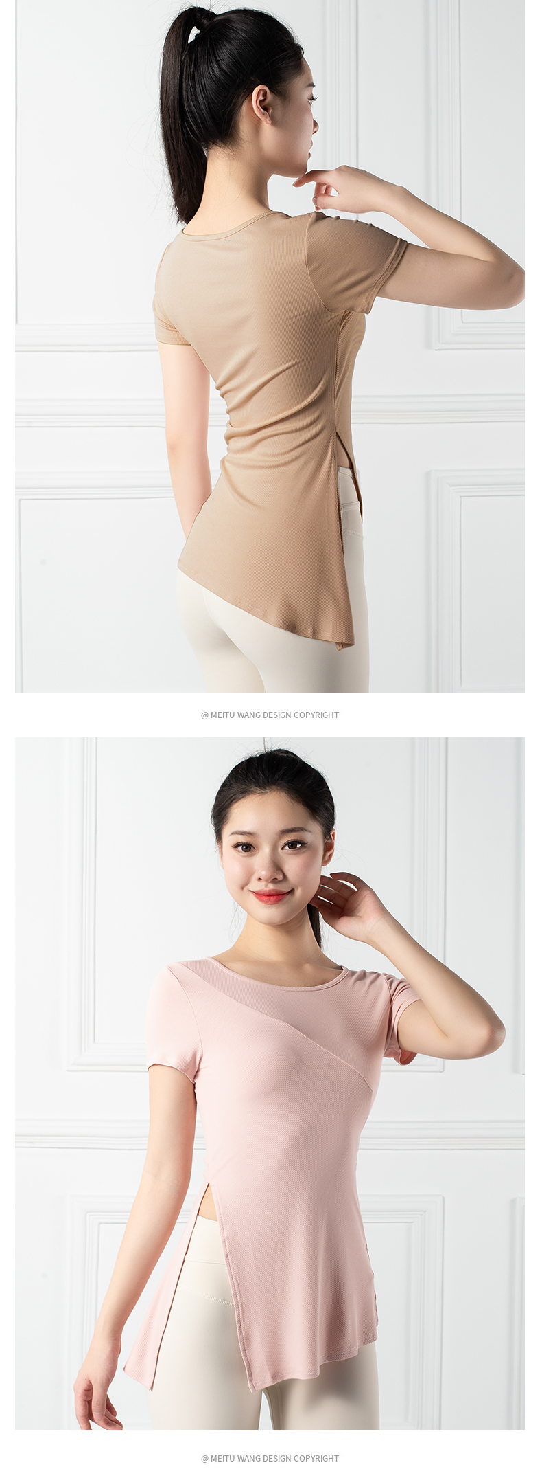 跃牌【禅语梵心系列】下摆侧开叉短袖瑜伽服健身T恤F2144 (不带胸垫)