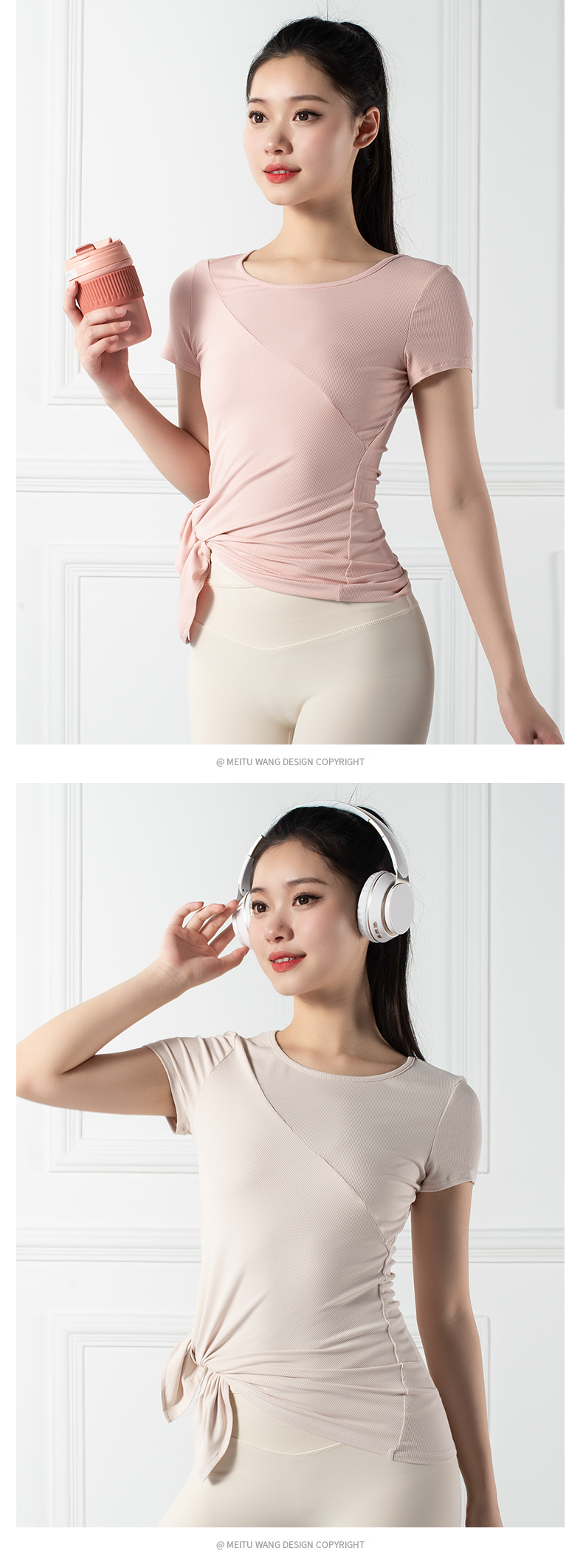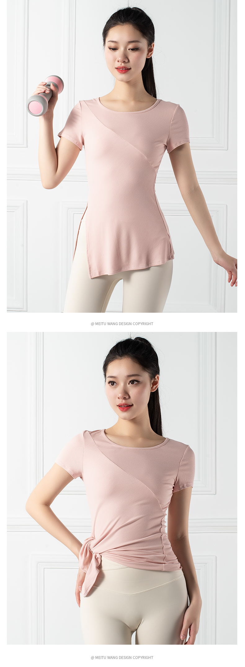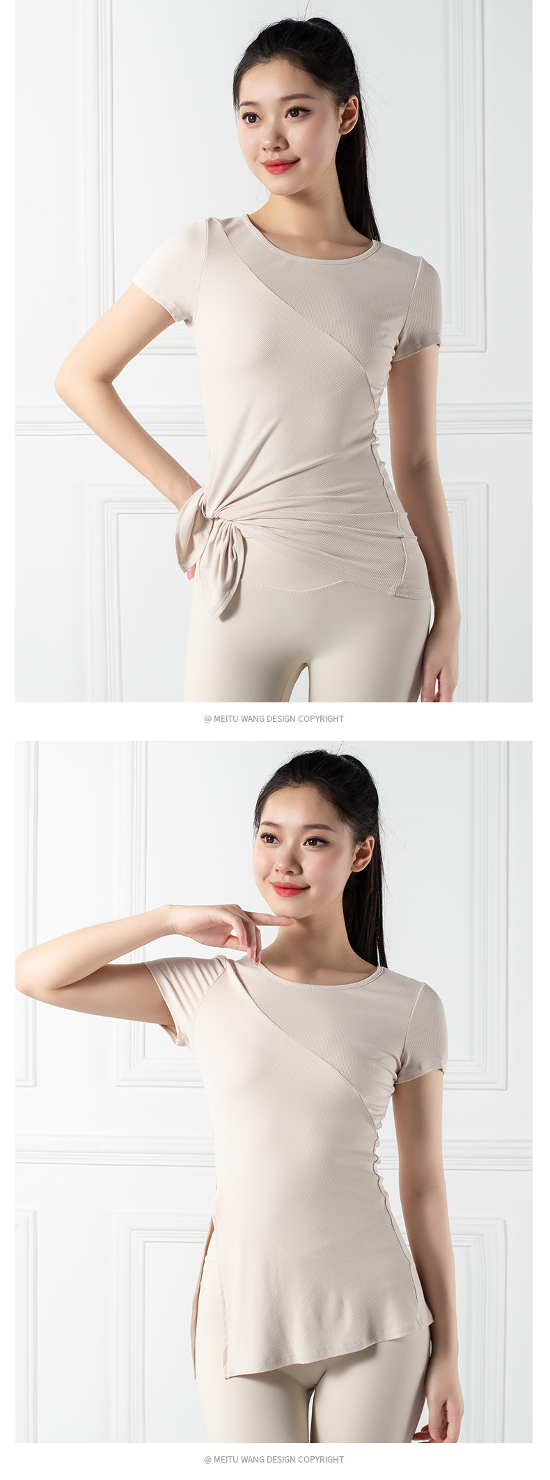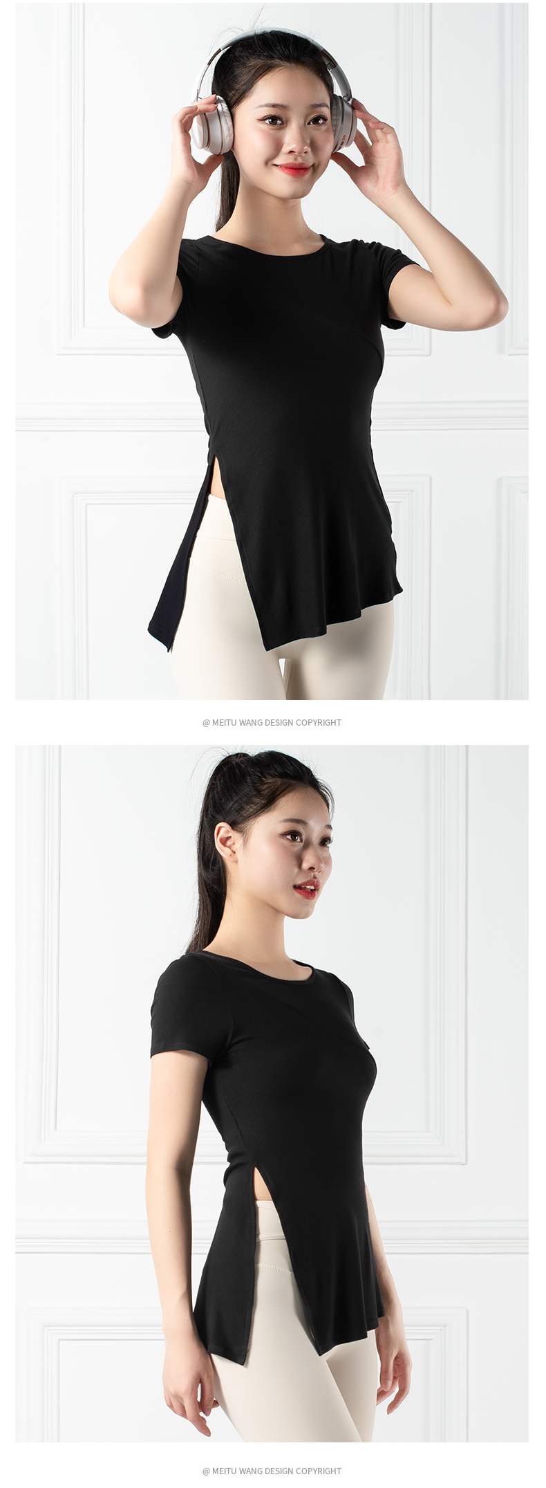 跃牌【禅语梵心系列】下摆侧开叉短袖瑜伽服健身T恤F2144 (不带胸垫)